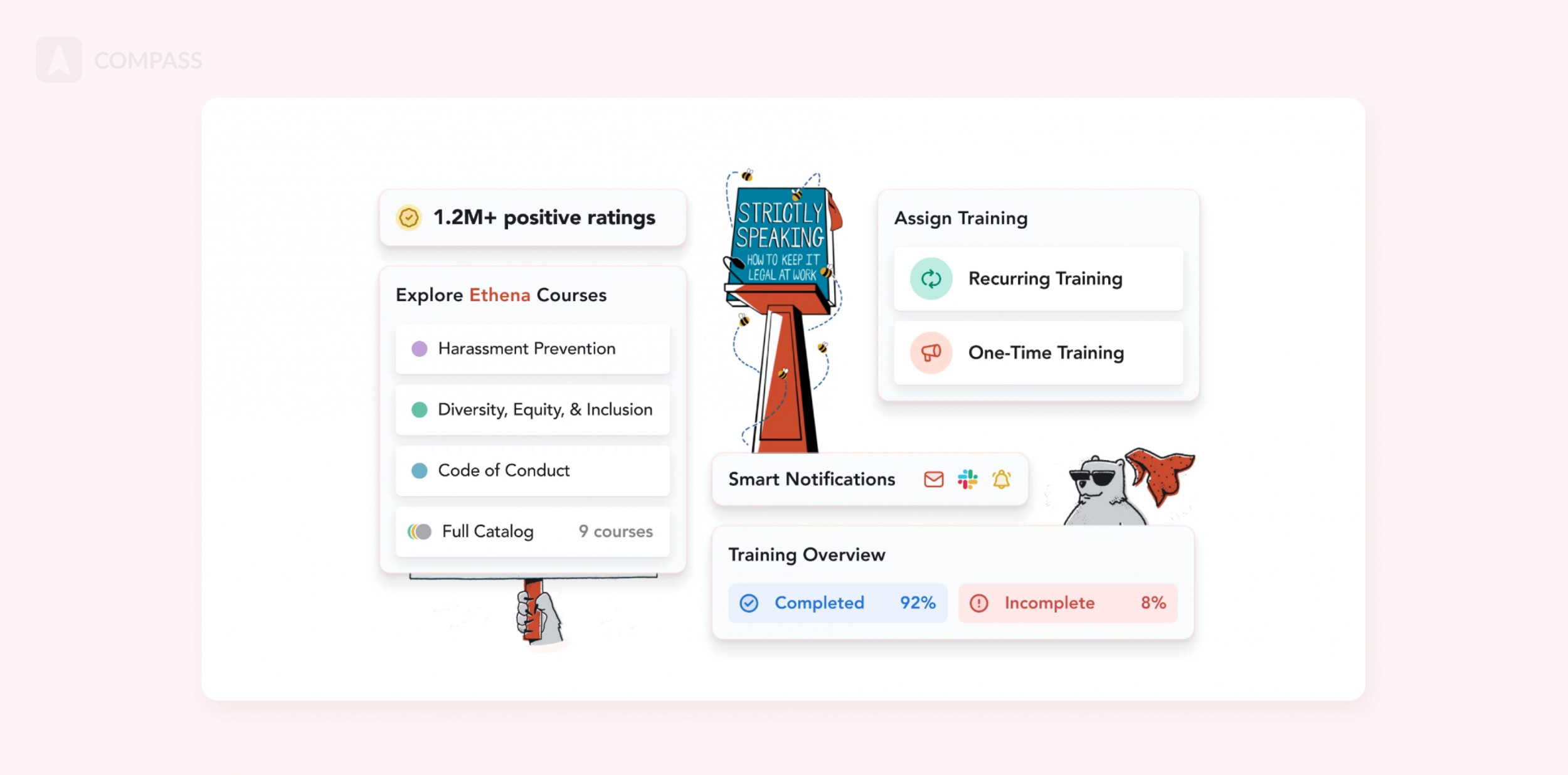 Не все курсы в каталоге Ethena универсальны, так как некоторые опираются на американское законодательство. Но в базе есть программы, которые будут полезны для любой команды, независимо от ее местонахождения.