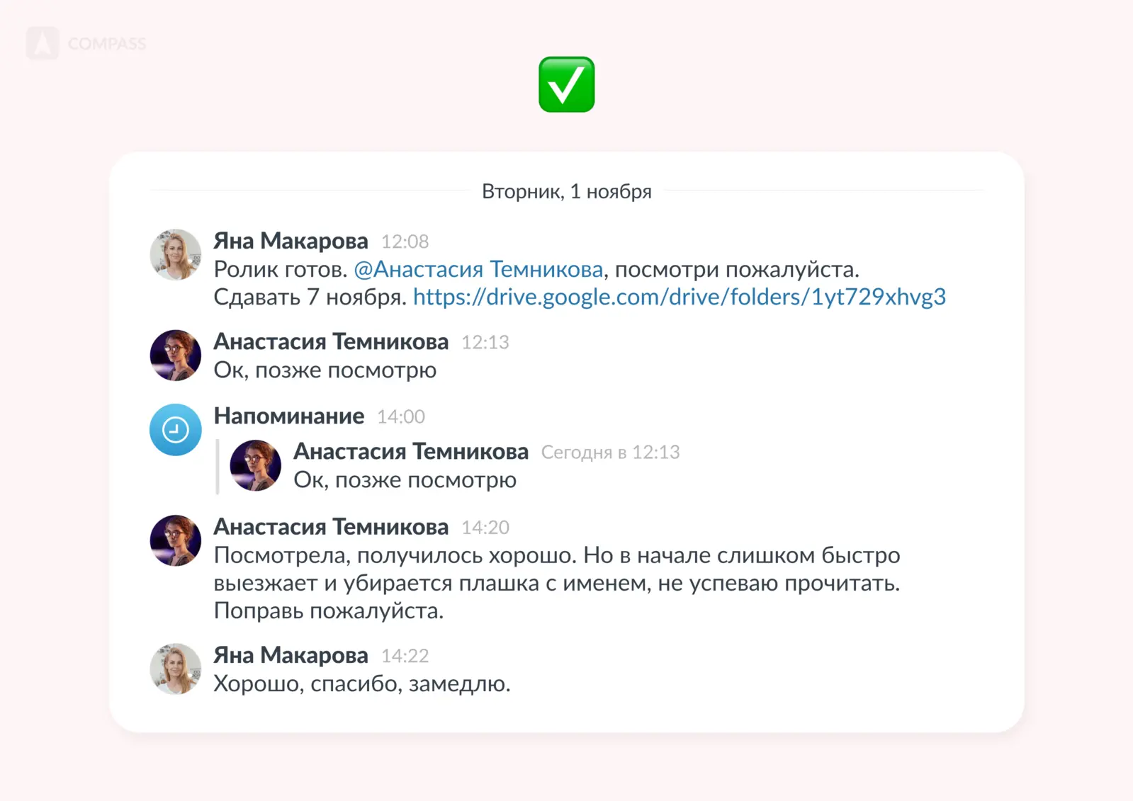 Всем привет! На связи команда корпоративного мессенджера Compass.