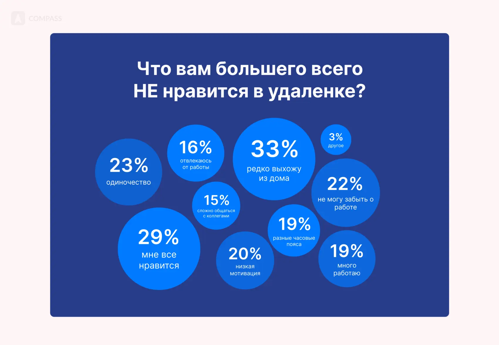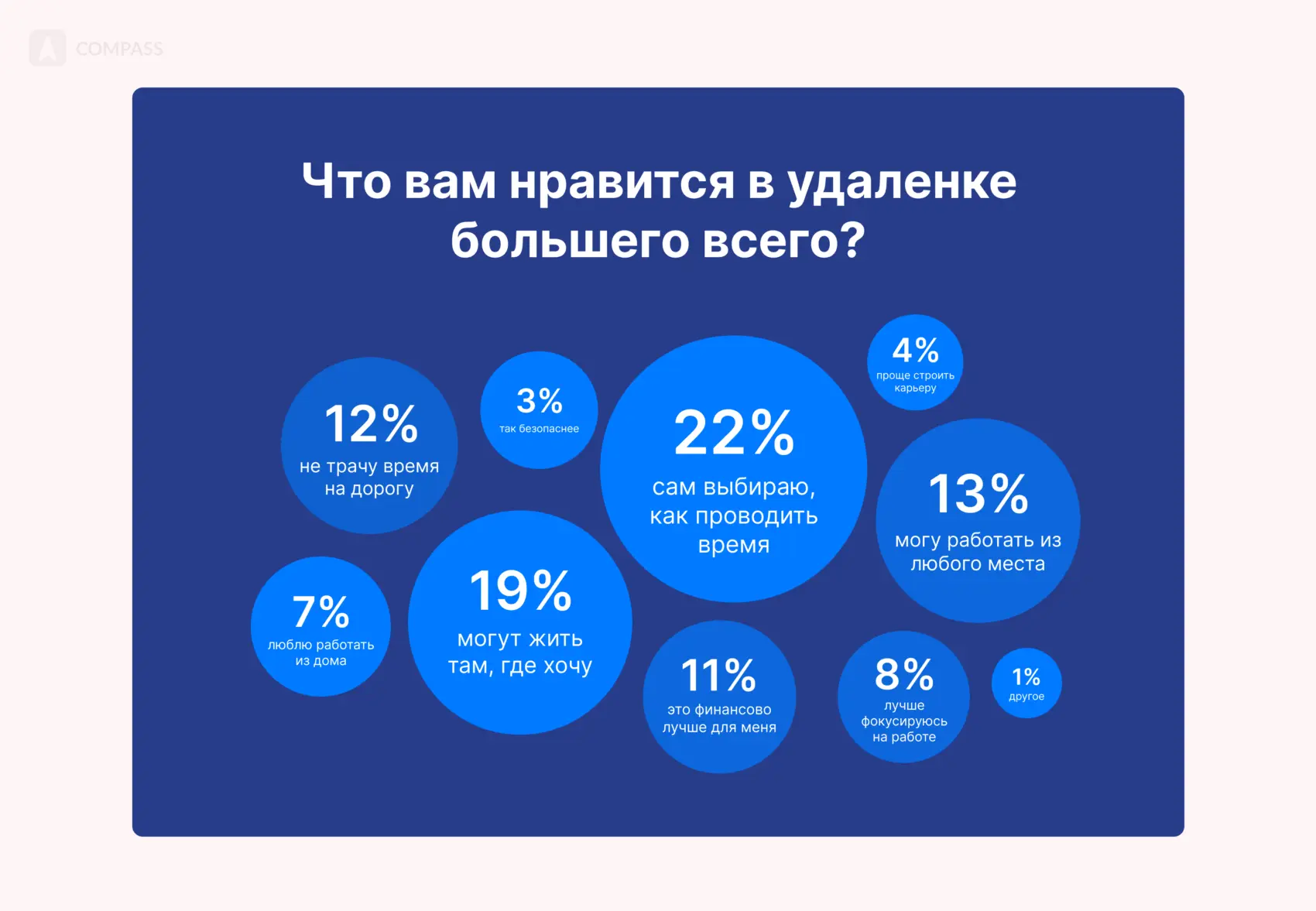 - 19% респондентов любят удаленку за то, что можно жить в любой части мира.