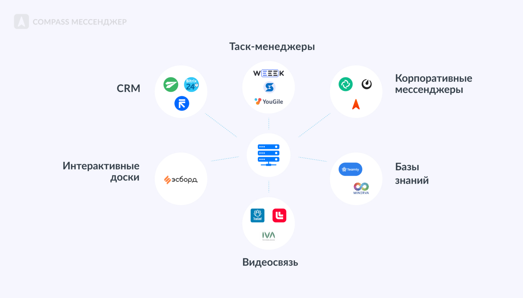 - интегрируется с цифровыми продуктами Apple, Google и Microsoft, а также с системами 1C;