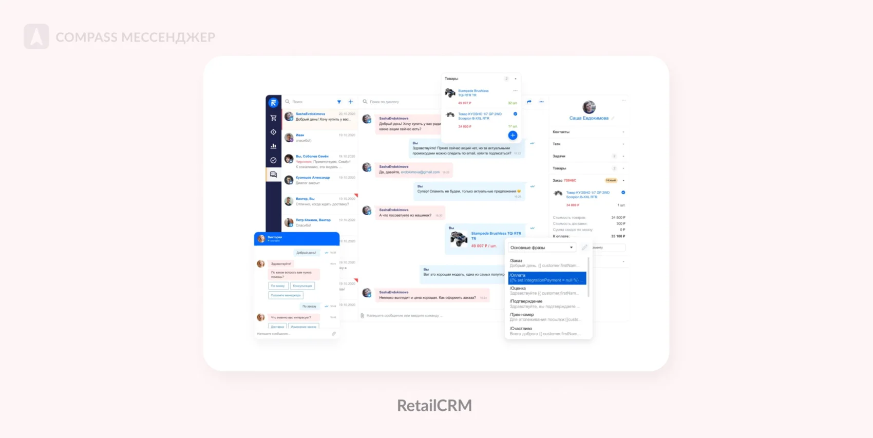 - интегрируется с маркетплейсами, мессенджерами, сайтами объявлений, перевозчиками, системами оплаты и т.д.;