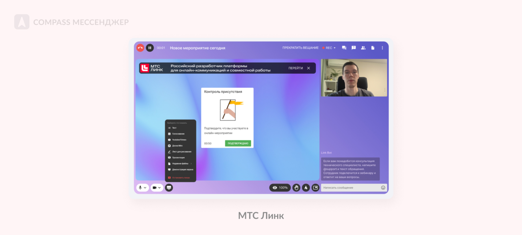Корпоративная платформа видеоконференций для встреч разных форматов — лекции, рабочие звонки, совещания и т. д.