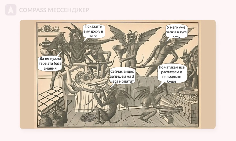 Когда новичок приходит в компанию — посмотреть видео ему действительно проще и интереснее, чем сразу читать кучу документов. Но сотрудник привыкает, вливается в процессы, а базовые вещи могут забыться — это нормально. Если сотруднику нужно быстро подсмотреть порядок действий в задаче — пересматривать видео неудобно. Нужны текстовые регламенты, которые можно быстро найти и использовать в работе. А еще в видео не получится поиграться с форматами подачи информации и добавлять схемы, инфографики и чек-листы. Миф 3. База знаний будет полезна только новичку. «Вот когда будет найм, тогда и сделаем» За полгода в компании накапливается документов больше, чем библиотека Ивана Грозного. Из-за того, что они разбросаны по дискам и почтам, сотрудникам приходится тратить кучу времени на поиски нужных кейсов. Как побочка — нужно постоянно дергать коллег. Иначе говоря, польза от базы знаний есть для всех сотрудников, а не только для новичков. Даже опытным сотрудникам иногда нужно подсматривать в инструкции и регламенты. Готовая база знаний экономит время всем. Миф 4. Руководителю нужно взять весь процесс на себя и самому наполнять базу знаний Это точно не так. Руководитель задает лишь общее направление и ключевые области, а не обслуживает базу знаний. Лучше поручить задачу руководящему составу, например, HRD, тим-лид, руководителю отдела. Они анализируют кейсы в своих отделах и создают регламенты их решения. Идеально, если в команде есть специальный чат, в котором сотрудники пишут чего не хватает в базе знаний, или что нужно обновить. Миф 5. У нас уже есть папка в Google Диск, зачем ещё одно хранилище Выше говорили о полугодии, а теперь представьте сколько документов появится на диске за 5 лет. Это уже не библиотека, а комменты на Youtube — хаос из сотен файлов. В такой ситуации проще заново написать регламент, чем найти нужные наработки. Помимо того, что в Google Диске сложно организовать поиск, важно еще контролировать права доступа и вести апдейт регламентов. Выход один — специальные сервисы. Они предлагают расширенные возможности для совместной работы, поиска и интеграции статей друг с другом. 1. Команда меньше спотыкается на проблемах, с которыми уже сталкивалась раньше Ситуация: компания разрабатывает мобильные приложения. Команда сталкивается с багом, который уже фиксила в прошлом. Но сотрудник, который занимался проблемой, уволился, и решение приходится искать заново. На этом вполне можно потерять несколько рабочих дней. А ведь эти знания уже есть — нужно их просто зафиксировать. В Lee Hecht Harrison подсчитали, что сотрудник, у которого есть быстрый доступ к корпоративной информации, приносит компании в 2 раза больше прибыли, чем его коллеги без доступа к wiki. 2. Можно проанализировать статистику, чтобы посмотреть, с какими процессами чаще всего возникают проблемы В базе знаний можно проанализировать, что сотрудники ищут чаще всего. Какие можно сделать выводы: Так можно точечно совершенствовать процессы и убедиться, что у сотрудников всегда есть актуальная информация. 3. Сотрудники меньше дергают тимлидов, потому что могут подсмотреть сами Сотрудники могут сами справляться с трудностями, а руководители — сосредоточиться на стратегических вопросах. По оценкам International Data Corporation, компании из списка Fortune 500 теряют около 31,5 миллиарда долларов в год из-за отсут