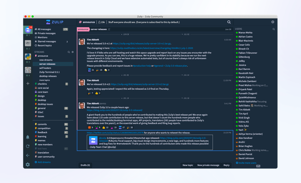 Совместной работы над кодом мало. Командам нужно созваниваться и обсуждать рабочие моменты в чатах.
