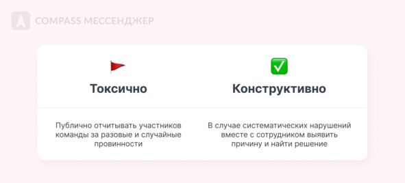 Выстроить прозрачную систему коммуникации гораздо важнее, чем физически находиться в одном месте. Сделать это помогут сервисы для бизнеса, например, отдельный корпоративный мессенджер. 2. Начинайте день с разноса за опоздания Дополнительный бонус отсутствия удаленки — возможность отчитывать сотрудников за утренние опоздания. Можно даже с большими часами у входа стоять и лично встречать мчащихся на работу коллег. Бежит недостаточно быстро? Объяснительную на стол! Приехал на работу позже, потому что проиграл битву за маршрутку и ждал следующий автобус? Сам виноват, объяснительную на стол! Дожди и снегопады тоже так себе причина для задержки — объяснительную на стол! Это не значит, что вы сами всегда должны приходить вовремя, — вы и без этого эталон. Если подобная оплошность случилась с вами, помните: руководство не опаздывает, руководство задерживается. В нормальном мире бывают ситуации, когда все идет не по плану. Разовые опоздания вообще не стоят внимания. Если же коллега опаздывает систематически, нужно поговорить с ним «один на один» и обсудить причину. Вполне может быть, что проблему можно решить за пару минут. Например, сдвинуть начало рабочего дня на полчаса, если сотрудник задерживается, потому что отвозит ребенка в садик. 3. Постоянно напоминайте о себе Если сотрудник не будет знать, как сильно вы ждете от него выполненных задач, то и торопиться не станет. Такой расслабленный режим нам не подходит: производительность вашей команды должна конкурировать с мощнейшими китайскими заводами. А значит, сотрудников нужно постоянно подгонять. Врывайтесь с ноги в рабочий день коллег: приходите в личку, звоните, пушьте их сообщениями «Долго еще?», «А сейчас долго?», «Ну что там у тебя?». Пусть сотрудники знают, насколько вы вовлечены в рабочие процессы и учатся быстро переключать внимание. В нормальном мире специалисты умеют работать сами и соблюдают дедлайны при адекватной нагрузке. Задача руководителя — выстроить рабочие процессы и разумно распределять задачи. Если вам все же приходится время от времени «пинать» коллег по задачам, это тоже нормально. Договоритесь об этом заранее и поставьте себе где-нибудь напоминание, чтобы не держать задачку в голове. Friendly Reminder: Быстро переехать из Slack можно в мессенджер Compass. А еще мы позаботимся о ваших данных и перенесем все переписки. 4. По любому поводу — объяснительную на стол! Это правило уже упоминается в предыдущем пункте, потому что оно всеобъемлющее и подходит к любой ситуации. Объяснительные — отличный способ выстроить дисциплину в мире нежных снежинок, где все слишком умные, и знают, что руководитель теперь не может выписывать денежные штрафы или 10 плетей. Требуйте объяснительные по любому поводу: от нарушения распорядка дня из-за выхода в магазин на 3 минуты, до разъяснения причин непочтительного тона, который вы точно уловили во время разговора. Ничего страшного, если у сотрудников из-за этого не останется времени на работу. Зато они научатся следовать всем вашим правилам. В нормальном мире объяснительные используются в крайних случаях, когда есть риск возникновения трудовых споров. Если же вам нужно исправить поведение сотрудника, но при этом сохранить уважительные отношения, гораздо эффективнее будет использовать корректирующую обратную связь. Изучите тему фидбэка подр