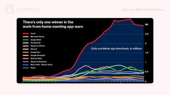 В декабре 2019 года количество ежедневных пользователей Zoom доходило до 10 миллионов. А потом случился локдаун — компании по всему миру были вынуждены перестраиваться под формат удаленной работы и искать универсальное решение для связи.