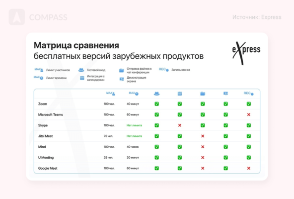 - бесплатные конференции на 100 человек длительностью по 40 минут;