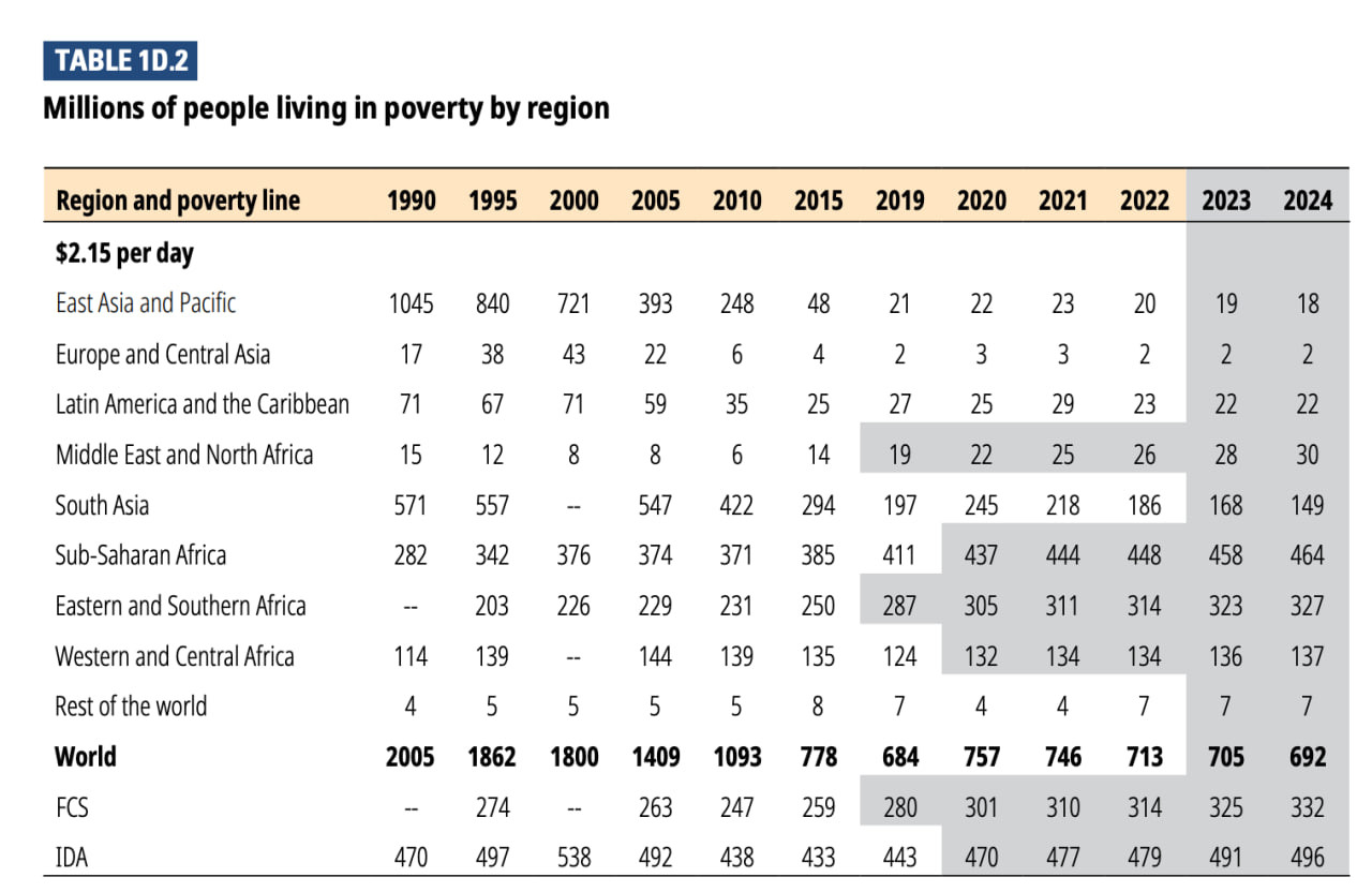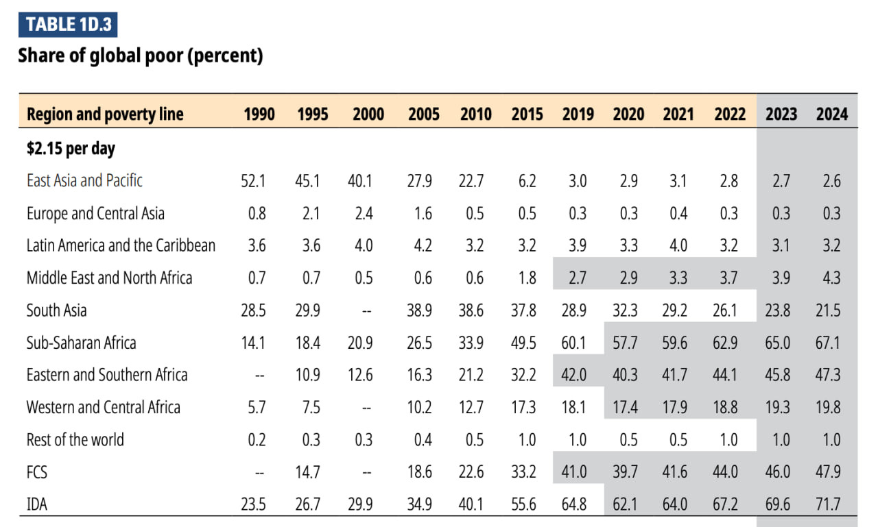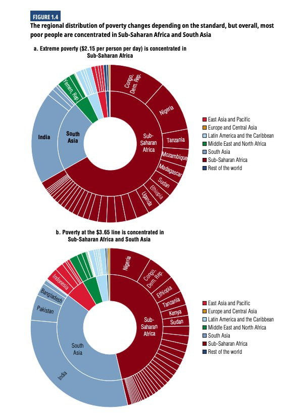 Доля нищих в Субсахарской Африке резко выросла в конце 2010-х годов, что было обусловлено тем, что страны с большой численностью бедного населения стали нестабильными (например, Буркина, Нигер, Нигерия, Южный Судан и т.д.).