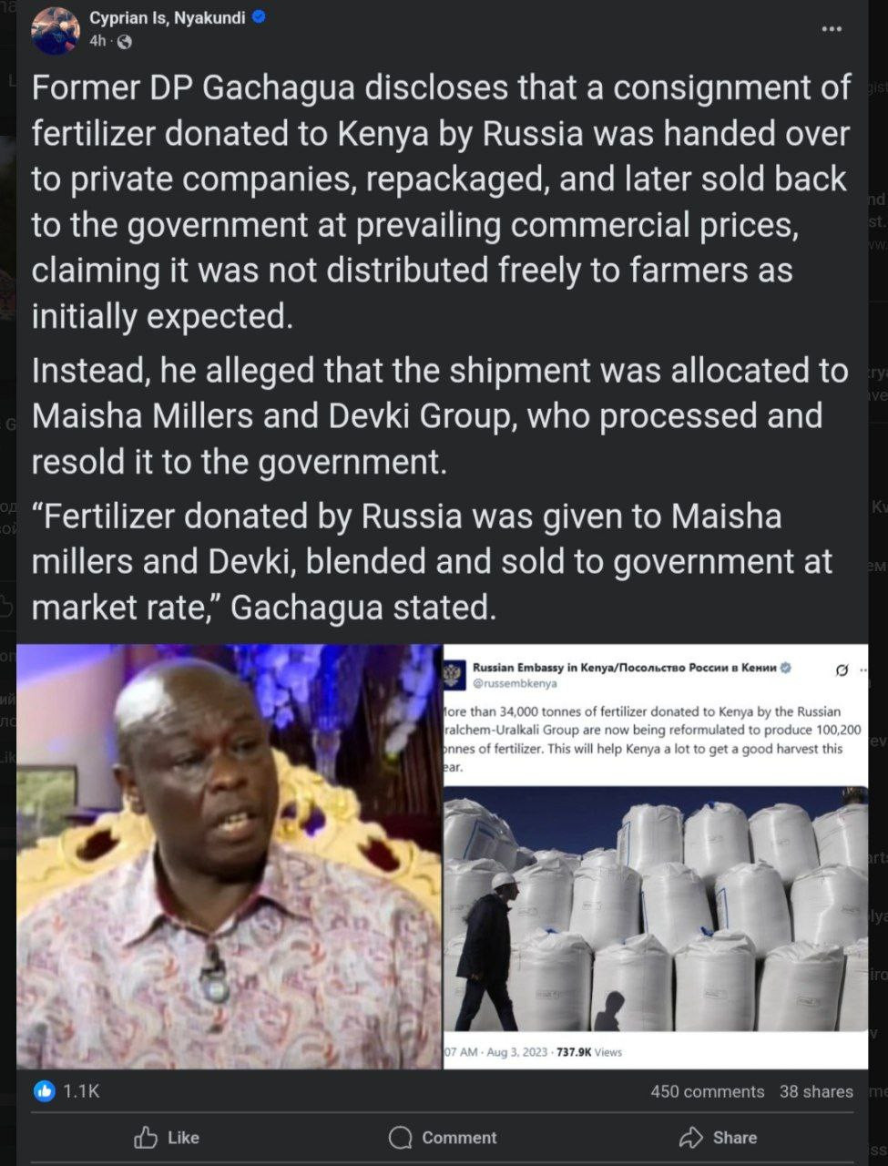 1. Правительство Кении получило 564 тонны российских удобрений бесплатно.