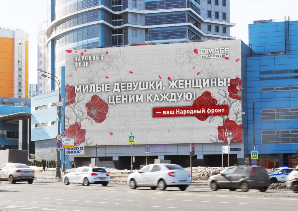 Еще одна праздничная акция запущена совместно с Народным фронтом. Трогательный сюжет — цветы и поздравления от участников Команды Путина: известных артистов, спортсменов, общественных деятелей...