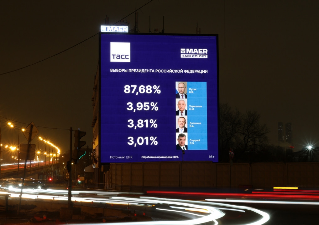 Свыше 400 млн раз увидят россияне информацию об итогах голосования на выборах Президента РФ на больших уличных экранах