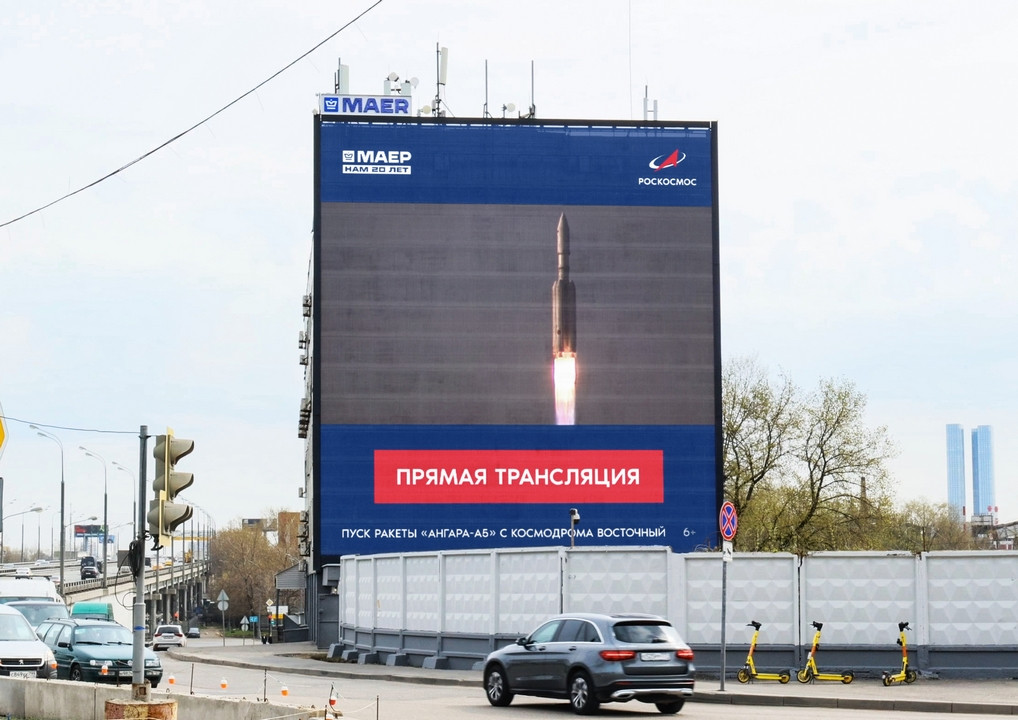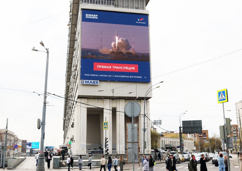 Получив от Роскосмоса видеосигнал с космодрома «Восточный», медиахолдинг МАЕР распространил его с помощью единой централизованной системы управления экранами и собственной запатентованной технологии Lightborn. Современная экологически чистая ракета «Ангара-А5» полностью заменит легендарную ракету «Протон-М». Она будет выводить на низкую околоземную орбиту различные грузы весом до 24,5 тонны. В качестве топлива применяются безопасные вещества — керосин и кислород. Многоразовый блок ракеты можно будет использовать десять раз. В перспективе семейство ракет «Ангара» доставит космонавтов на Луну.