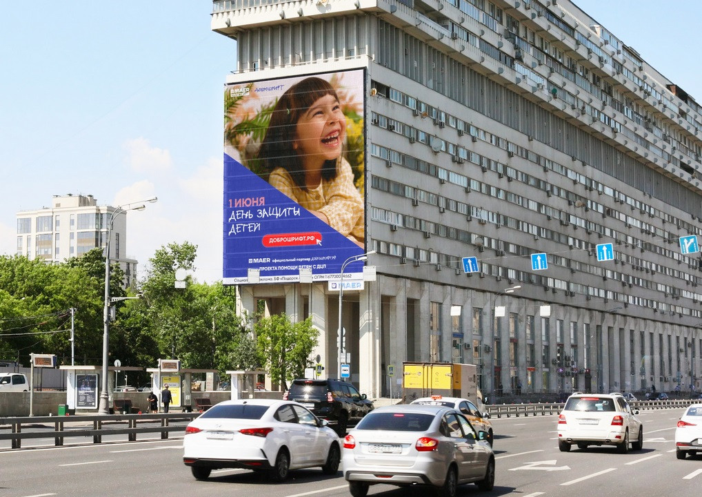 на крупнейших медиафасадах страны поздравляет юных россиян с Днем защиты детей.