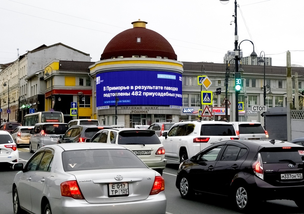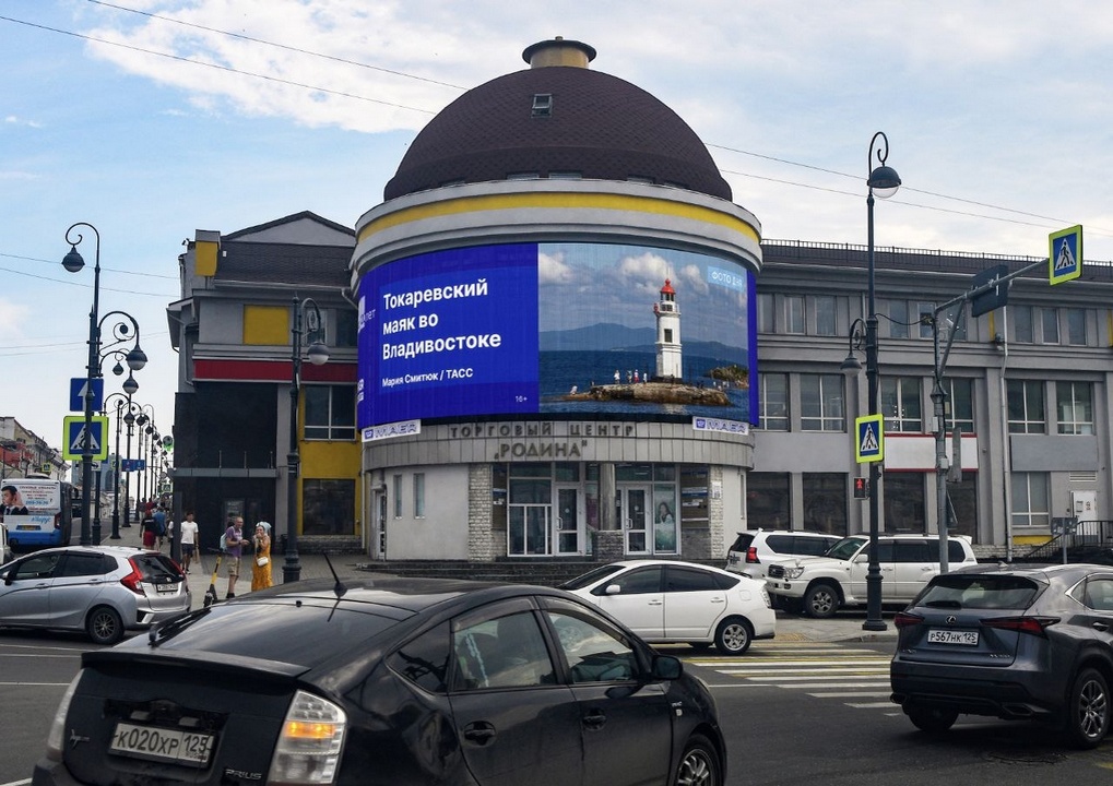 Он располагается на здании торгового центра «Родина». Все дороги Владивостока спускаются к морю, и через перекресток улиц Семеновская — Алеутская ежедневно проезжают тысячи жителей и гостей Приморского края. Теперь все они благодаря новому медиа могут увидеть актуальный контент, узнать о культурных, спортивных и социально значимых событиях в стране и регионе.