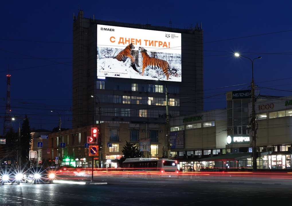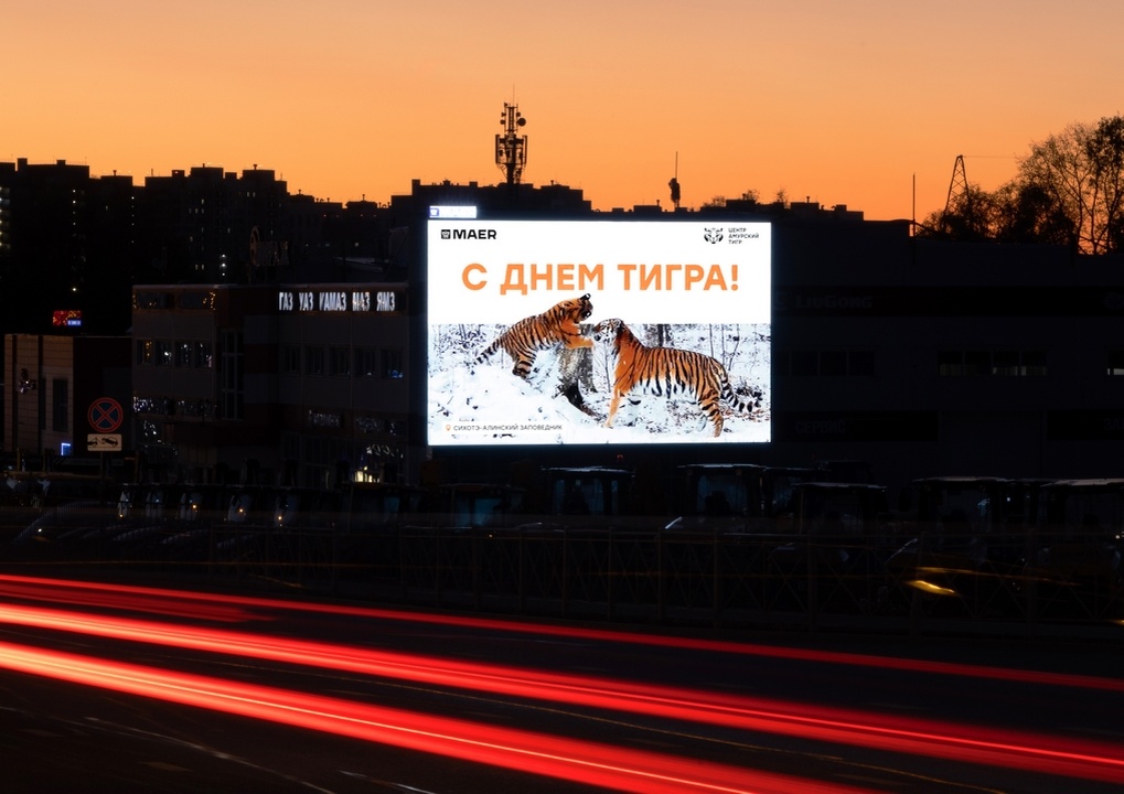 Поздравительные ролики на больших цифровых экранах жители крупных городов России увидят свыше 33 миллионов раз. Коммуникационным партнером выступил медиахолдинг МАЕР, подписавший на полях Восточного экономического форума соглашение с Центром «Амурский тигр».