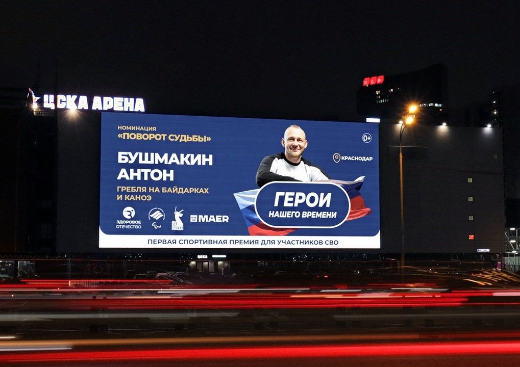 Первая церемония вручения спортивной премии ветеранам СВО стала значимым и ярким событием в российском спортивном движении. Награды лауреатам вручали высокопоставленные государственные деятели, представители Олимпийского и Паралимпийского комитетов, общественных организаций и спортивных федераций. Победителем в номинации «Поворот судьбы» стал Антон Бушмакин, чемпион России по гребле. Антон из Краснодара, ветеран СВО, сапер, во время выполнения боевых задач лишился обеих ног. Активно занимается греблей на байдарках и каноэ, чемпион России 2024 года, входит в состав сборных России и Краснодарского края, состоящих из спортсменов с поражением опорно-двигательного аппарата. Спортивная премия «Герои нашего времени» подчеркивает мужество и стойкость людей, которые, пройдя через тяжелые испытания, нашли в себе силы вернуться к активной жизни и продолжить служить своему делу. Лауреаты церемонии были определены в 10 номинациях, отражающих их жизненные истории и путь восстановления после ранений: — «Преодоление» — награждены ветераны СВО Николай Бондаренко и Цыден Генинов, добившиеся успехов в стрельбе из лука. — «Точка опоры» — отмечены заслуженные паралимпийцы и амбассадоры проекта «Мы вместе. Спорт» Танаткан Букин, Владимир Каманцев, Анатолий Крупин и Елена Крутова. — «Поворот судьбы» — награду получил Антон Бушмакин, чемпион России по гребле. — «Что наша жизнь? — Борьба!» — лауреатом стал Руслан Устюжин, серебряный призер чемпионата России по волейболу сидя. — «Сила в воле» — отмечен Денис Ишбулатов, бронзовый призер Кубка России по пулевой стрельбе. — «Личным примером» — награду получил Герой России Вячеслав Бочаров. — «Я люблю тебя, жизнь» — лауреатом стал Ринат Васильев, двукратный чемпион Москвы по пауэрлифтингу. — «Второе дыхание» — награду получил Дмитрий Селянин, вратарь следж-хоккейного клуба «Феникс». — «И жизнь, и слезы, и любовь...» — премия присуждена супругам Сайфуллиным за выдающиеся достижения и преданность спорту. — «Возвращение в жизнь» — лауреаты Ростислав Костенко и Владислав Шинкарь, успешные спортсмены по фехтованию на колясках. Портреты всех 16 лауреатов премии «Героев нашего времени» будут транслироваться от Санкт-Петербурга до Владивостока на медиафасадах МАЕР до 20 февраля.