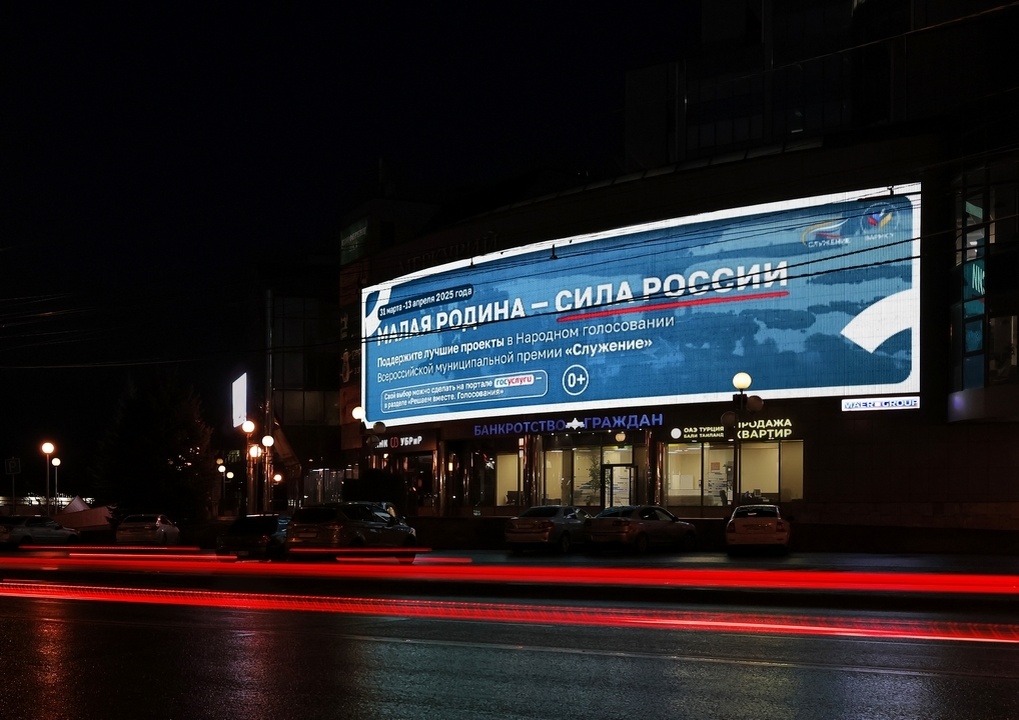 С первых дней СВО он взял на себя одну из самых сложных задач: обеспечение безопасности людей на приграничной территории. Через его район прошли более 6 тысяч беженцев. 25 февраля 2022 года у границы в селе Рассыпное собрались 38 человек, в том числе 16 детей. Владимир первым прибыл на место и, рискуя жизнью, под прикрытием пограничников лично перевёл их в российское село Солонцы. После этого он более 36 раз выезжал с гуманитарной миссией в Донецк, Луганск, Запорожье, Сватово и Кременную, передав бойцам более 400 тонн гуманитарной помощи. Всего на премию было подано 41 313 заявок из всех регионов страны, включая новые субъекты. Народное голосование за Топ-100 участников проходило на портале Госуслуг. Медиахолдинг МАЕР выступил коммуникационным партнером форума «МАЛАЯ РОДИНА — СИЛА РОССИИ» и премии «Служение». На протяжении нескольких недель жители крупнейших городов России видели на медиафасадах и цифровых уличных экранах призыв проголосовать за номинантов. В итоге за них был отдан почти 1 миллион голосов. А информацию о конкурсе в общей сложности на медиафасадах увидели свыше 5 миллионов человек.