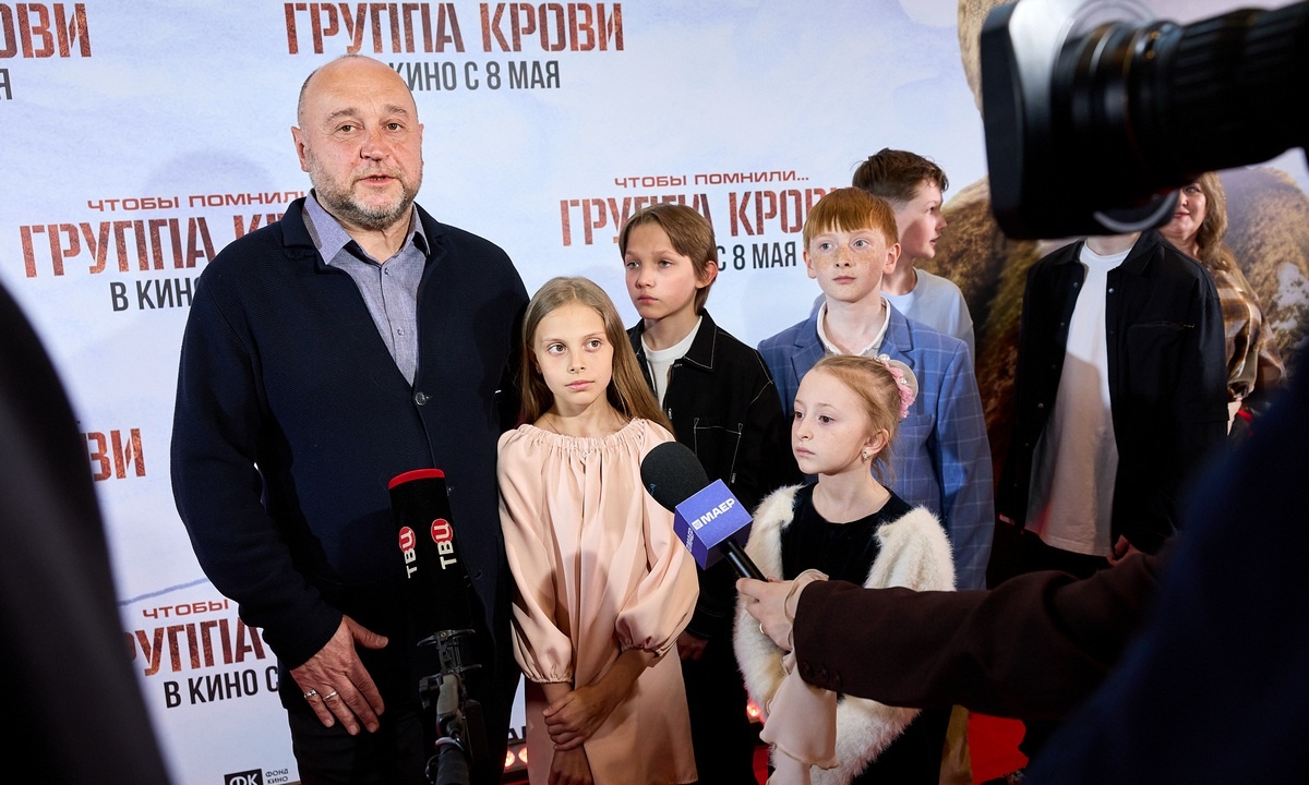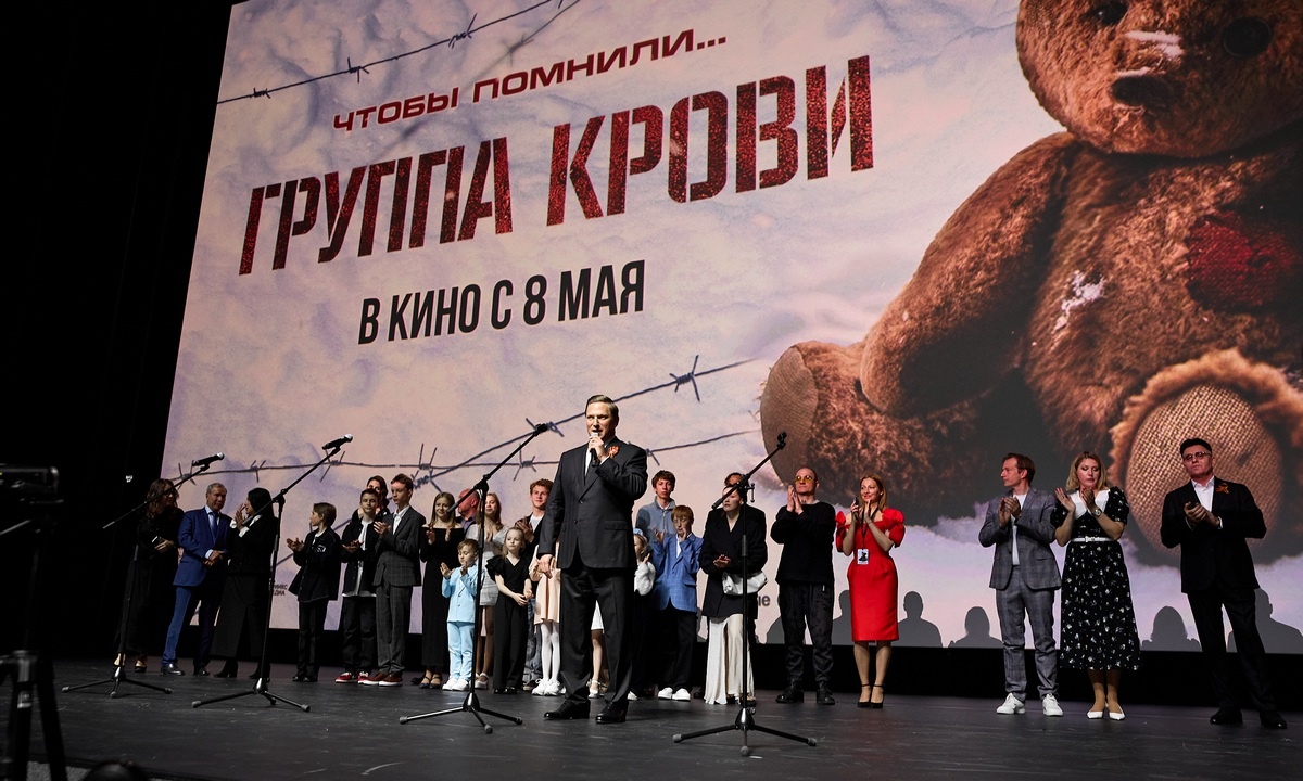 Премьерный показ собрал около 1 000 гостей, включая 270 представителей федеральных СМИ, известных блогеров и экспертов кинематографического сообщества. Среди почетных гостей были Владимир Шаманов, Тина Канделаки и другие общественные деятели. В картине снялись сотни детей, которые не просто сыграли свои роли, но и глубоко прочувствовали трагедию своих сверстников, переживших войну. Медиахолдинг МАЕР выступил коммуникационным партнером фильма. Фильм «Группа крови» выходит в прокат в преддверии Дня Победы, 8 мая.