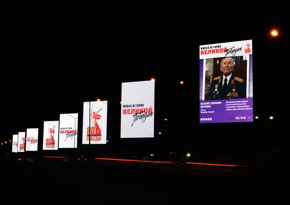 Совместно с МИЦ «Известия» МАЕР проведет 9 Мая прямую трансляцию Парада Победы на Красной площади. Прямой эфир и повторы лучших кадров россияне увидят более 41 миллиона раз. Видео с Красной площади в режиме реального времени будет транслироваться на цифровых экранах и медиафасадах в Москве и Московской области, Санкт-Петербурге, Сочи, Воронеже, Екатеринбурге, Челябинске, Новосибирске, Уфе, Тюмени, Самаре, Нижнем Новгороде, Волгограде и других городах. Трансляция Парада Победы возможна благодаря запатентованной технологии «Лайт» и единой системе управления цифровыми экранами. Большой проект «Великая Победа» с МИЦ «Известия» медиахолдинг МАЕР запустил еще в феврале, за 80 дней до Победы. Уникальный цифровой проект позволил жителям всей России показать фотографии сегодняшних ветеранов и цитаты из их историй, 3D-модели легендарного оружия Победы, символизирующего мощь и силу Советской армии, оживлённые с помощью искусственного интеллекта фотографии из военного архива «Известий». Важной частью проекта стал рассказ о ключевых датах и событиях, приближавших Великую Победу. МАЕР традиционно покажет на всех экранах и «Бессмертный полк». К 80-летию Победы медиахолдинг разработал специальное визуальное оформление для проведения онлайн-трансляции шествия «Бессмертного полка» и призвал всю отрасль присоединиться к акции в единой стилистике. Только на экранах МАЕР портреты участников Великой Отечественной войны увидят свыше 6,5 млн человек, за сутки будет обеспечено порядка 63 млн просмотров. Движение «Бессмертный полк России» появилось как народная инициатива, сегодня объединяет все регионы страны и более 200 международных координаторов. Медиахолдинг МАЕР поддержал ежегодную всероссийскую благотворительную акцию «Красная гвоздика», направленную на сбор средств для медицинской помощи ветеранам. Собранные средства будут переданы для оказания медицинской помощи ветеранам Великой Отечественной войны. К акции присоединятся 83 региона. В 2024 году удалось собрать более 204 млн рублей — рекордную сумму за всю историю «Красной гвоздики». Помимо поддержки других проектов, МАЕР запустили свой «Альбом памяти». На медиафасадах транслировали фотографии бабушек и дедушек, родственников сотрудников — участников Великой Отечественной войны. Эти кадры, многие из которых ранее хранились исключительно в семейных архивах, увидели свыше 3,2 миллиона человек. Свои креативы ко Дню Победы также запустили крупнейшее информационное агентство ТАСС, департаменты СМИ Москвы и Московской области.