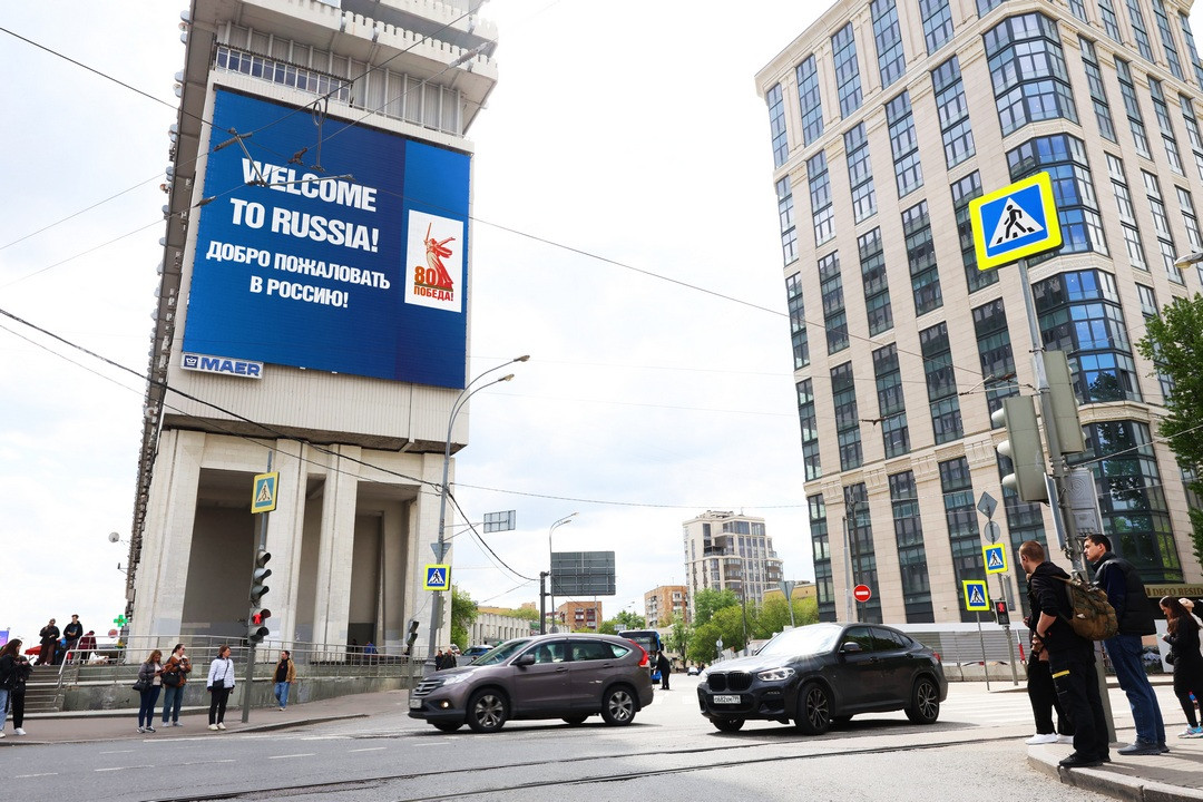 Москва встречает иностранных гостей приветствиями на медиафасадах