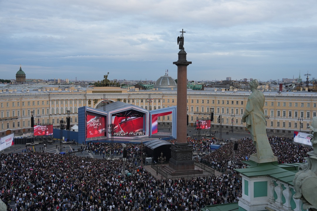 Концерт «Алых парусов» собрал на Дворцовой площади порядка 100 тысяч человек. Среди них петербургские выпускники и гости из 31 региона России. Также на праздник приехали более 500 ребят из Абхазии, Беларуси, Кыргызстана, Молдовы, Узбекистана, Кубы, Венесуэлы и стран Африки. Губернатор Санкт-Петербурга открыл праздник традиционным ударом в корабельную рынду.