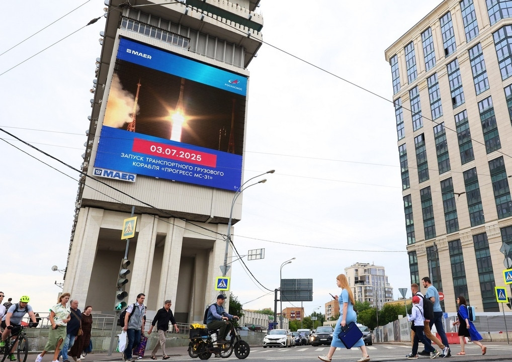 Днем 4 июля кадры старта начали транслировать на уличных медиаэкранах по всей России, за три дня их увидят свыше 30 млн раз.