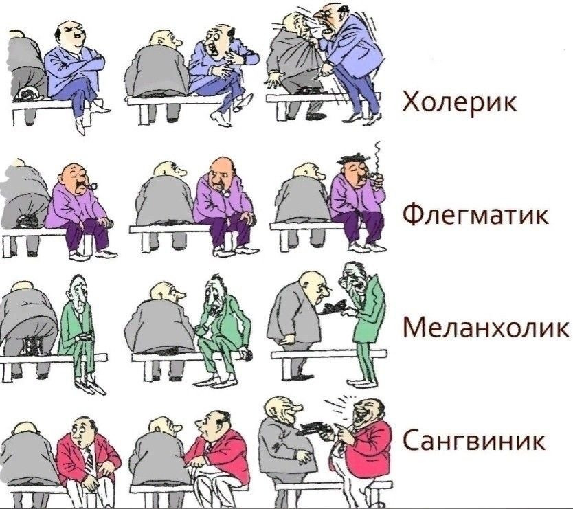 Сегодня поговорим о темпераментах: сангвиник, холерик, меланхолик, флегматик.