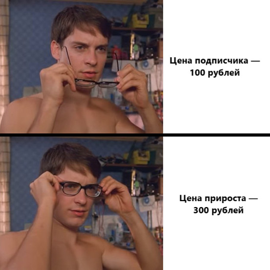 Как и любое независимое медиа, мы зарабатываем себе на хлеб сами. Получаем комиссию от Яндекс Маркета с каждого заказа, сделанного по ссылке из нашего материала. Телеграм-канал помогает нам в дистрибуции наших материалов: больше просмотров анонсов, больше читателей у статьи, больше переходов и покупок, больше лаве в кассе. Мы начали продвижение одновременно в РСЯ и через посевы в чужих телеграм-каналах. С посевами много суеты. Нужно отобрать каналы, договориться о размещении, написать креатив, сделать маркировку, отчитаться в ОРД. Реклама через Яндекс Директ на порядок проще: нужно выставить настройки кампании в рекламном кабинете, подгрузить текст и медиафайлы для объявления. Из настроек нам были доступны только гео (но нам это не нужно, работаем по всей России), тематика каналов и ограничение цены за клик. От последнего параметра зависит выиграем ли мы аукцион (увидят ли нашу рекламу), мы начали с минимального значения — 30 рублей. Под конец года были добавлены корректировки по полу, возрасту и платежеспособности, но любые эти уточнения снижали шанс размещения почти до нуля. Всё остальное делается автоматически. Мы протестировали оба способа и сделали вывод на старте, что РСЯ дает лучшие результаты при меньших трудозатратах, поэтому от посевов временно отказались. Цифры в Яндекс Директе за первый месяц кампании были такие: 35,82 руб. — за клик, 97,96 руб. — за подписку, 126,32 руб — за прирост 1 подписчика (из подписавшихся вычитаем отписавшихся за первый месяц и корректируем этот показатель ежемесячно). Для сравнения прирост подписчика через посевы в тот же месяц обошелся в 154,31 рубля. После тестов в январе к посевам мы не возвращались, но со временем показатели продвижения через РСЯ стали ухудшаться. К концу лета цена прироста (подписки с учетом отписок в первый месяц) выросла почти втрое и перевалила за 300 рублей. При этом цена подписки за то же время выросла в полтора раза. По графику видно, как начали расходиться цены за прирост и подписку на канал. Из этого можно предположить, что система начала показывать нашу рекламу менее заинтересованной аудитории. Кроме этого почти в 3 раза выросла цена за клик: от начальных 30 рублей до 80. Видимо, участников аукциона становилось все больше и они поднимали ставки, а наша реклама перестала показываться пользователям по старой цене за переход. Либо Яндекс искусственно завышал минимальные значения, чтобы заработать на нас побольше (шапочка из фольги имеется). Про себя мы назвали РСЯ «чертовой рулеткой». Потому что здесь наше влияние на результат минимально. Мы можем менять картинки и переписывать текст в креативах, но остальное от нас не зависит. Иногда это может стрельнуть, а иногда пристрелить остатки бюджета. Перебор разных вариантов креативов результатов на дистанции не дал. С августа решили снова поработать с посевами. Основной плюс размещения в «ручном» режиме — можно самостоятельно подобрать и проанализировать каналы, пообщаться с админами, договориться о времени, скидках, дополнительных условиях, а при хорошем результате разместиться повторно. В августе мы протестировали три креатива, лучшим оказался один из самых первых вариантов, который мы использовали в чертовой рулетке РСЯ. Неожиданный момент: хотя цена вступления в канал была выше даже чем в Яндекс Директе, цена прироста (с вычет