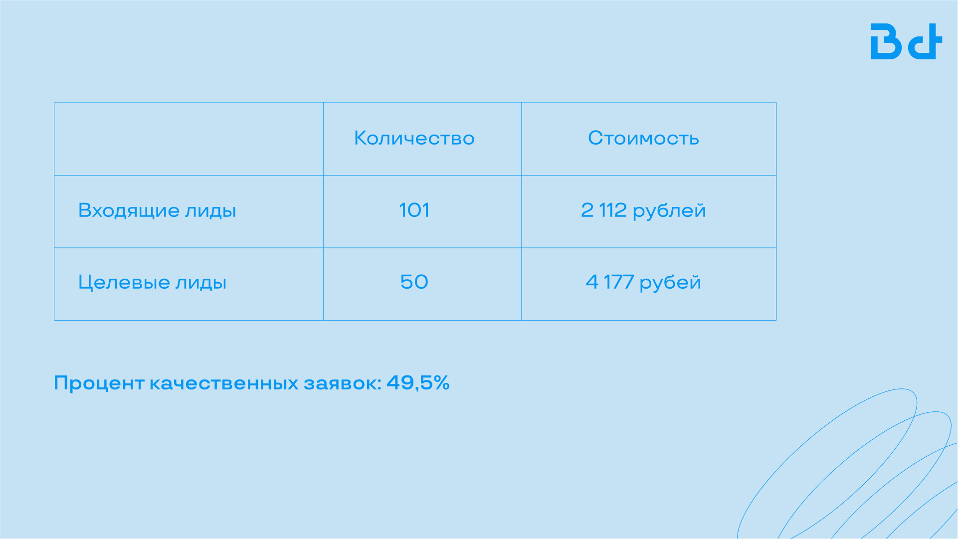 Один из наших заказчиков — застройщик из Уфы, который строит квартиры и дома в эконом- и комфорт-сегменте. Для продажи коттеджей комфорт-класса мы использовали квизы. И вот сколько входящих и целевых заявок мы получили за август 2024-го года: