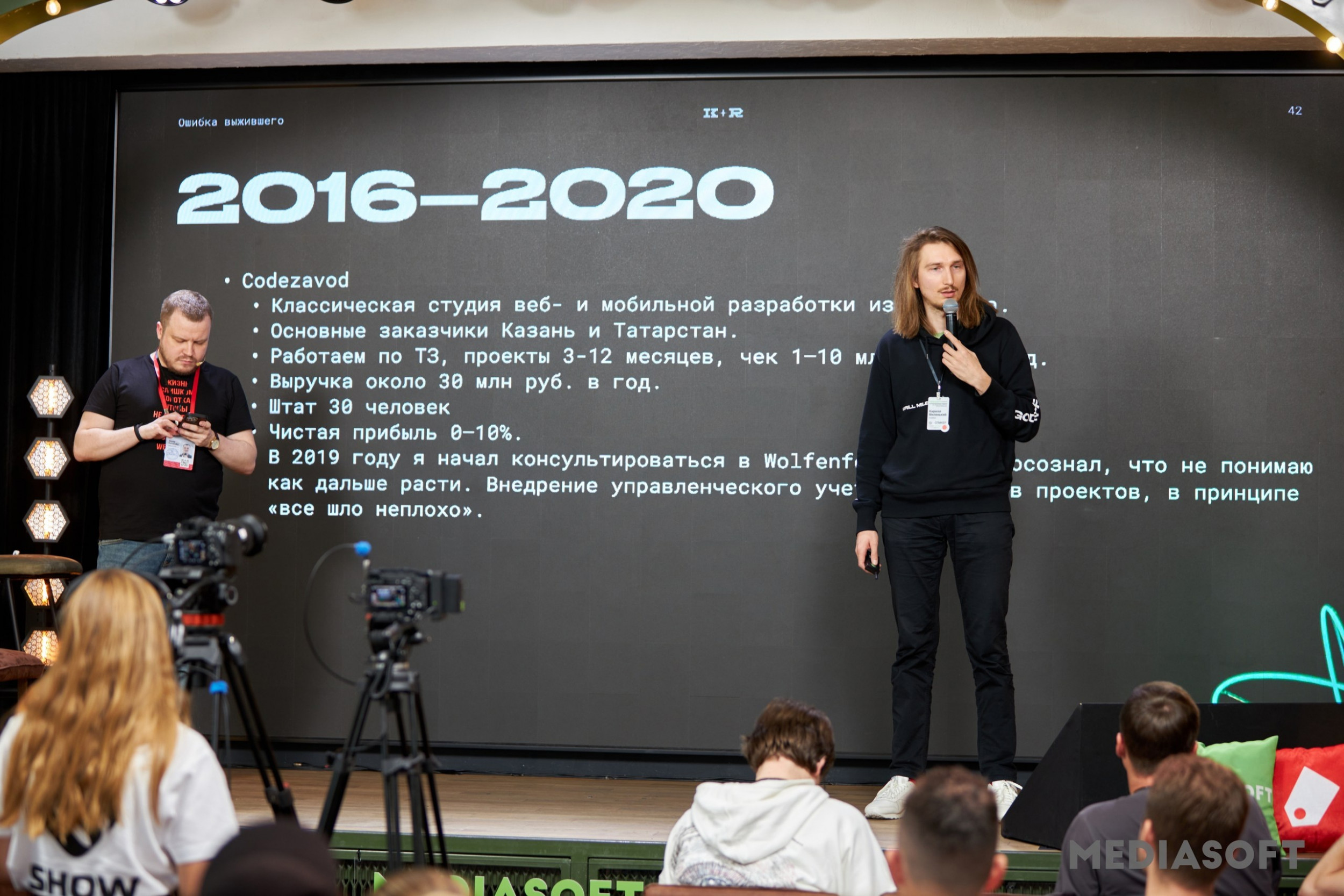 Кроме докладов на конференции прошел круглый стол на тему «Неочевидные бизнес-решения как источники роста digital-продакшна — опыт компаний», где спикеры поделились кейсами из личного опыта и отвечали на каверзные вопросы, как и за счет чего увеличивается их выручка. После 4-х летнего перерыва Тэглайн возобновил выпуск рейтингов компаний digital-рынка. На конференции были презентованы два рейтинга — веб-студий / диджитал-продакшнов (разработчиков сайтов) и разработчиков мобильных приложений / mobile production. В перерывах между докладами и по окончании программы у участников была возможность пообщаться друг с другом, со спикерами и организаторами конференции в неформальной обстановке, обсудить последние новости рынка и поделиться впечатлениями от полученной информации на докладах. Мы решили сменить привычный город проведения конференции и в 2023 году отправиться в Самару, где находится один из офисов MediaSoft. Самара — уникальный город, центр космической и авиационной промышленности страны. Чтобы прочувствовать весь потенциал региона, мы подготовили технологическую экскурсию в музей «Самара Космическая». Участники смогли соприкоснуться с историей ракет, звезд и астероидов, попробовать настоящий космопит и даже выйти в открытый космос с помощью очков виртуальной реальности. Завершающим мероприятием конференции была «Ошибка выжившего» от Алексея Раменского, управляющего партнера Tagline / agency2agency. Это единственное мероприятие в digital-индустрии, где разбирают опыт фаундеров digital-агентств/продакшнов без обмана. Спикеры ответили на неудобные вопросы и рассказали, как их бизнесу удалось выжить, какие решения они принимали и к чему это привело. Запись трансляции 1 и 2 дня, а также презентации спикеров можно посмотреть на нашем сайте: https://conf.mediasoft.team/.
