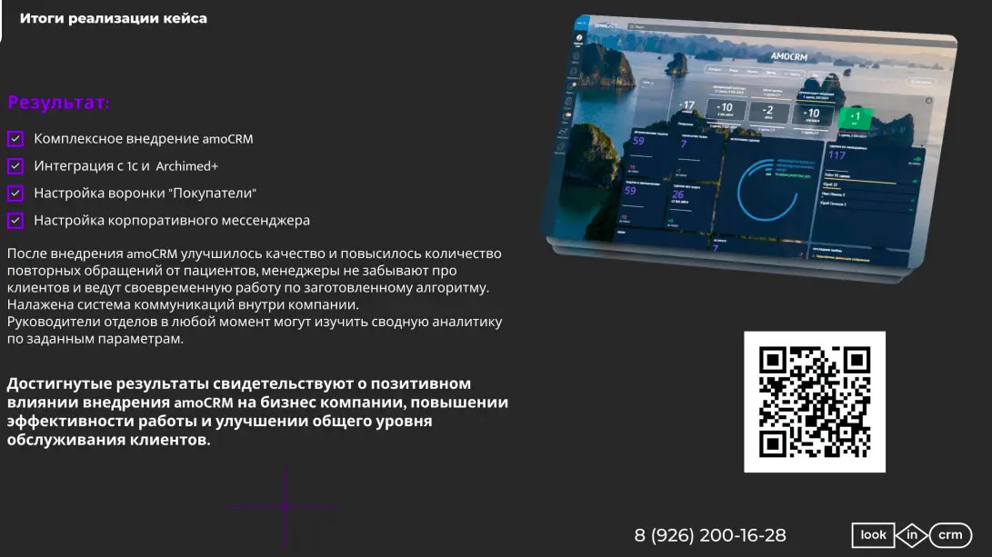 На третьем этапе мы привлекли программиста для интеграции CRM со всеми внешними сервисами и источниками заявок, а также настройки максимальной автоматизации. В этот момент подключили к работе нашу интеграционную платформу, которая значительно расширила стандартные возможности amoCRM.