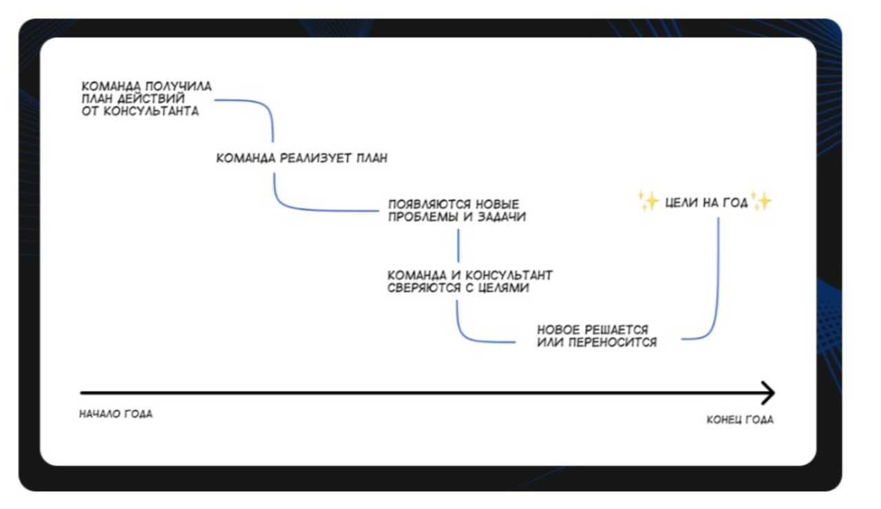 С мотивацией программистов и разработкой стратегии руководство «Плюса» справилось самостоятельно. Но затем всё же решили пригласить директора по развитию, чтобы поменять принципы работы менеджеров. К новому году нужно было определиться с планами на 2023 год. И чтобы эта работа не прошла впустую, договорились на проведение стратегической сессии. О ней мы вам и расскажем.