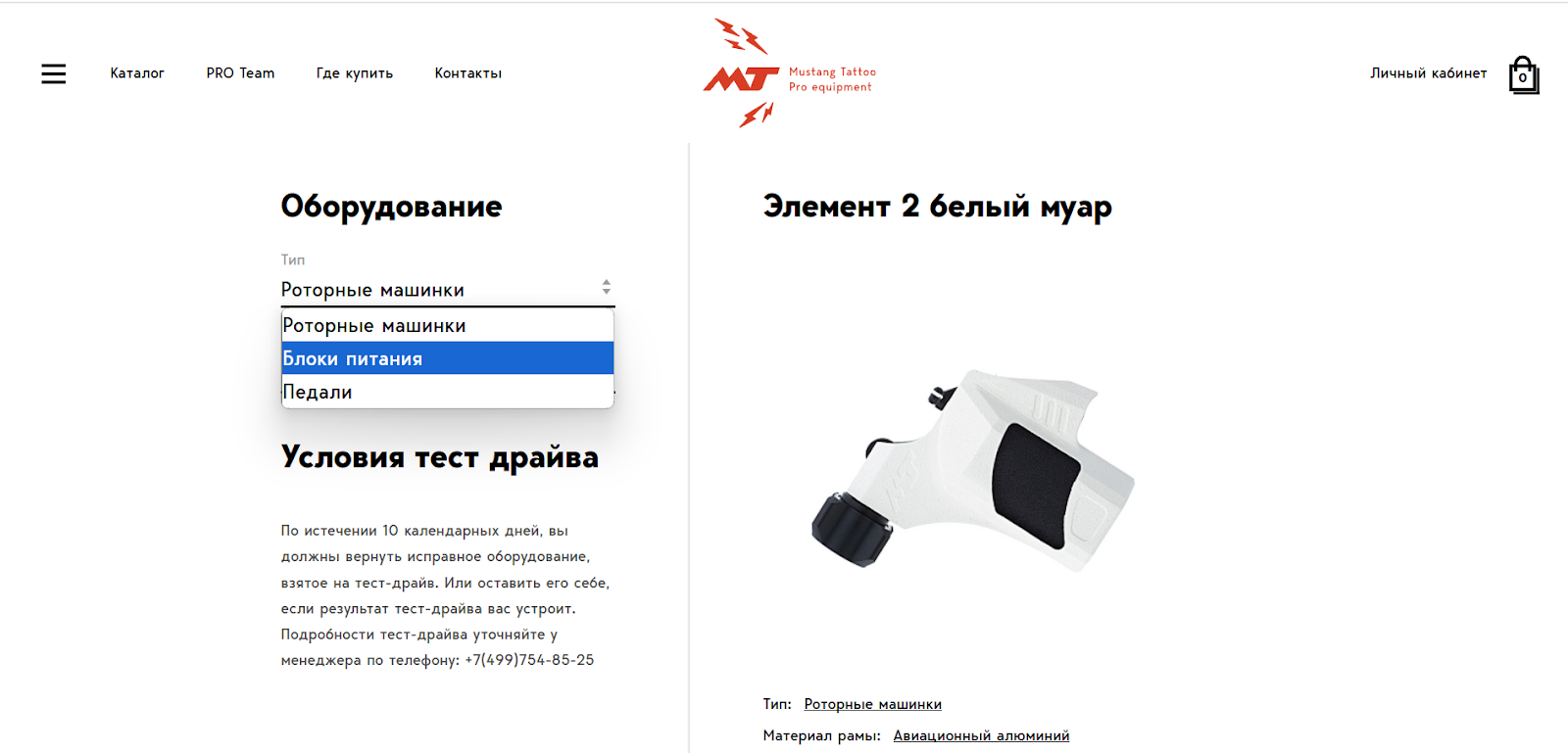 Работа над системой велась поэтапно: 1. Разделение пользовательских сценариев для B2C и B2B Сайт обслуживает две принципиально разные аудитории, поэтому для каждой была выстроена отдельная логика. 2. Механика тест-драйва оборудования Один из частых запросов от мастеров — возможность протестировать технику до покупки. Вместо стандартной формы обратной связи с клиентом был создан полноценный модуль : пользователь выбирает нужное оборудование, указывает сроки и адрес, после чего заявка автоматически фиксируется в CRM и обрабатывается как отдельный заказ. Это сократило время отклика и упростило процесс как для клиента, так и для менеджера.Ме 3. Индивидуальная сборка тату-машинок через онлайн-конфигуратор Компания предлагает сборку оборудования под индивидуальные параметры. Под эту задачу был разработан конфигуратор: пользователь выбирает тип корпуса, цвет, двигатель, длину хода и другие характеристики. Выбранные данные автоматически собираются в единую структуру и передаются менеджеру как точное техническое задание. Такой подход ускоряет обработку заявки и минимизирует ошибки. 4. Каталог, который работает быстро даже при большом объёме товаров Ассортимент постоянно расширяется, и для стабильной работы сайта при увеличении количества товаров и фильтров потребовалось пересмотреть логику каталога. В результате фильтры и параметры были вынесены в отдельные блоки обработки, что снизило нагрузку на систему. Это позволило сохранить высокую скорость отклика и обеспечить комфортную работу с каталогом вне зависимости от его размера. На выходе клиент получил полноценное eCommerce-решение, в котором техническая архитектура сайта и пользовательские сценарии выстроены под реальные задачи бизнеса. Система одновременно обслуживает две разные аудитории и адаптирована к расширению функциональности без потери устойчивости. Кейс Mustang Tattoo наглядно показывает: digital-решение дает бизнесу результат только тогда, когда оно выстроено не по шаблону, а под реальные процессы внутри компании. Такой продукт — не просто сайт с каталогом, а полноценный рабочий инструмент, который учитывает логику продаж, структуру ассортимента, роли внутри команды и особенности клиентов. Если бизнес работает с несколькими типами заказчиков, предлагает сложный или кастомизируемый продукт и использует B2B-сценарии, стандартные шаблоны быстро перестают справляться. Их доработка тратит ресурсы, увеличивает издержки и мешает масштабированию бизнеса. Решение, изначально спроектированное под конкретные задачи, дает противоположный эффект: оно снижает нагрузку на сотрудников, автоматизирует рутину, упрощает обслуживание и помогает бизнесу расти на устойчивой и масштабируемой платформе. Такой подход стоит дороже на старте, но именно он позволяет экономить в процессе и строить стабильную систему на годы вперёд. Проект Mustang Tattoo — пример того, как системный подход позволяет eCommerce-платформе не просто функционировать, а работать в интересах бизнеса. Архитектура была выстроена под реальные сценарии: с учетом ролей пользователей, типов заказов, логики фильтрации, оптовых условий и последующей автоматизации. Именно такая проработка позволила интерфейсу работать на задачу, а не усложнять ее. Дизайн стал продолжением продукта — понятным, лаконичным, и в то же время функци