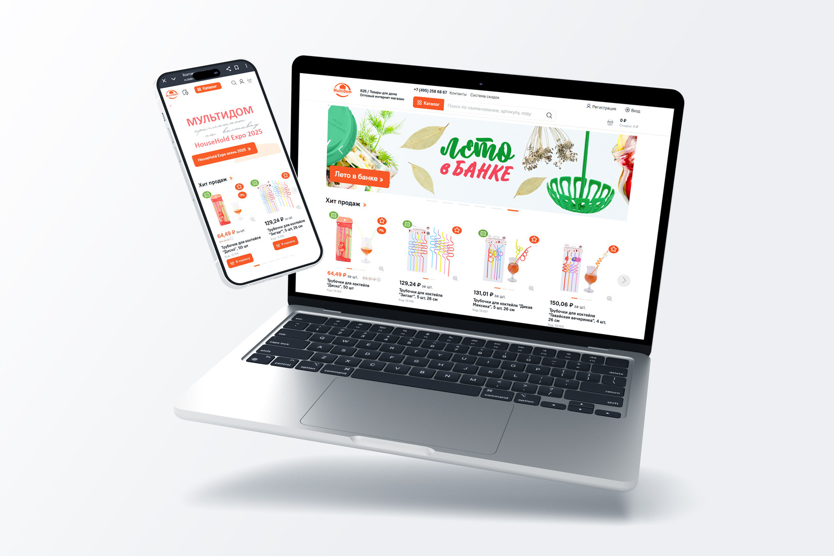 — фасетную фильтрацию с иконками и изображениями — чтобы выбирать было быстро и интуитивно просто. Теперь клиент находит нужный товар за 3–5 кликов. Без звонков менеджеру. Мы не делали сайт «как у всех». Мы делали его для профессионалов: — Штрихкоды в карточке, чтобы клиент мог сразу распечатать и использовать в учёте. — Видеообзоры и фото в 360°, чтобы не нужно было спрашивать менеджера, как выглядит товар. — Прогресс-бар скидок. Например, «До следующей скидки осталось 800 ₽» — это стимулирует увеличить чек. — Личный кабинет как командный центр: история заказов, условия, подписка на поступление, объединение отгрузок и т.д. Кстати, мы также сделали адаптивную вёрстку, SEO-оптимизацию и настроили редиректы — чтобы сайт работал одинаково хорошо и на десктопе, и на телефоне, и в поиске.Сайт стал новым бизнес-инструментом. Клиенты говорят, что «теперь удобнее, чем звонить менеджеру». А сам «Мультидом» получил точку роста — без увеличения штата. Если вы в B2B и до сих пор обрабатываете заказы вручную, то вы тратите время, деньги и возможности. Автоматизация — это не про технологии, а про свободу и дополнительные возможности. Иногда достаточно одного хорошо сделанного сайта, чтобы разгрузить целый отдел. Если вы чувствуете, что ваш сайт работает не на полную силу, возможно, пришло время его перезагрузить. У нас есть опыт в B2B и B2C, интеграциях с 1С и CRM, а еще наш UX решает бизнес-задачи, а не просто выглядит красиво.