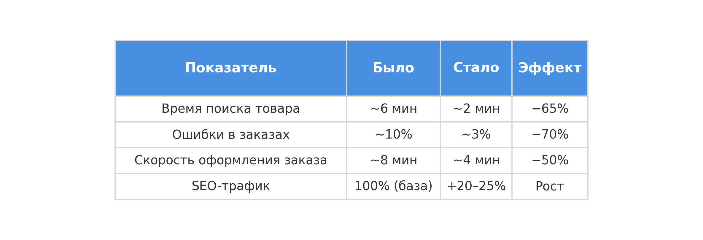 Интернет-магазин — это не просто онлайн-витрина, а ключевой элемент системы продаж. Если поиск неудобный или данные неточные, страдают и клиенты, и отдел продаж.