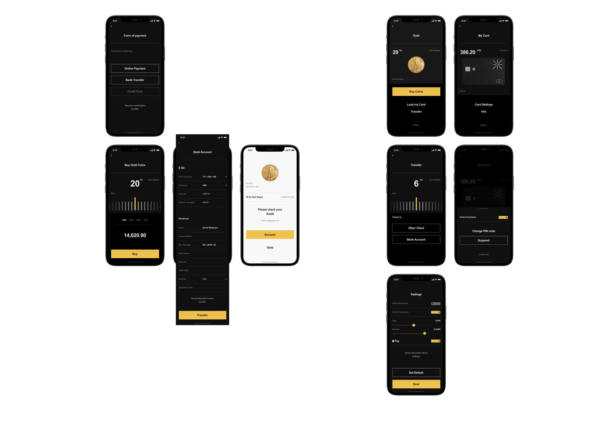 В основу заложили идею надежности. Для ее реализации выбрали минимализм, строгие линии и сдержанную цветовую гамму. В логотипе стремились отразить специфику компании: она занимается продажей английского и швейцарского золота. И нам удалось найти подходящее решение: в разработанном знаке угадываются одновременно и флаг Великобритании, и швейцарский герб. Кроме того, считывается первая буква названия компании — G. А расходящиеся лучи символизируют многофункциональность, т.к. конечный продукт GS-Project — это многофункциональный сервис в кармане. Далее, уже с опорой на логотип и базовые решения, мы разработали детали фирменного стиля. В итоге получился набор лаконичных элементов, которые смотрятся органично на всех носителях: на визитках, пластиковых картах, в диджитал-продуктах и т.д. Фирменный стиль согласовали и заложили в основу дизайна сайта и приложения. Так как у заказчика было общее представление о желаемом продукте, ТЗ разрабатывали с нуля вместе с ним. Для начала определили задачи бизнеса и задачи ЦА. Задачи бизнеса: — Получить удобную точку входа для ЦА; — Презентовать компанию и ее продукты; — Увеличить лояльность действующих клиентов; — Сформировать у пользователя доверие. Задачи ЦА: — Узнать подробности о компании, чтобы убедиться в её надёжности; — Найти информацию об услугах; — Узнать стоимость драгоценных металлов; — Зарегистрироваться; — Получить персональное обслуживание. Мы проработали и заложили в дизайн-систему решение всех этих задач. Предусмотрели, чтобы в мобильной версии сохранялось 100% функционала. Контента для сайта было мало, поэтому всю дизайн-концепцию выстраивали на визуальных решениях и типографике. В визуале опирались на строгость линии? и минимализм — в соответствии с новой айдентикой проекта. У заказчика уже было приложение, которое требовало доработок. Наша задача — обновить его дизайн, сохранив весь функционал. Какие задачи должно было решать приложение: — Удерживать новых клиентов; — Повышать их лояльность; — Помогать пользователям отслеживать свои транзакции; — Помогать совершать новые покупки, продажи и обмен драгоценных металлов. В дизайне использовали фирменный стиль, на основе которого был разработан сайт компании. Клиентам не нужно было привыкать к интерфейсу приложения, что позитивно влияло на пользовательский опыт. Основную часть работы мы вели на Vue.js. Этот фреймворк отлично подходит для реализации анимаций и плавных переходов между страницами. Также использовали Nuxt, чтобы оптимизировать процесс разработки. Бэкенд строили на связке Node.js и Laravel. Структуру посадочных страниц и административную часть сайта организовали так, чтобы загрузка контента происходила с учетом выработанных правил по размерам блоков, их очередности и формату. Учитывали интеграцию сайта со сторонними и внутренними системами заказчика, работу которых обеспечивала другая команда. Это система личных кабинетов, e-mail-рассылка, автоматическая актуализация прайс-листов. Также мы помогли связать сайт с мобильным приложением и внутренними сервисами заказчика, чтобы можно было размещать актуальную информацию в режиме «одного окна». Заказчик получил полностью упакованный проект: с сайтом, приложением и единым фирменным стилем для всех носителей. Сайт стал точкой входа для ЦА. Приложение удерживало к