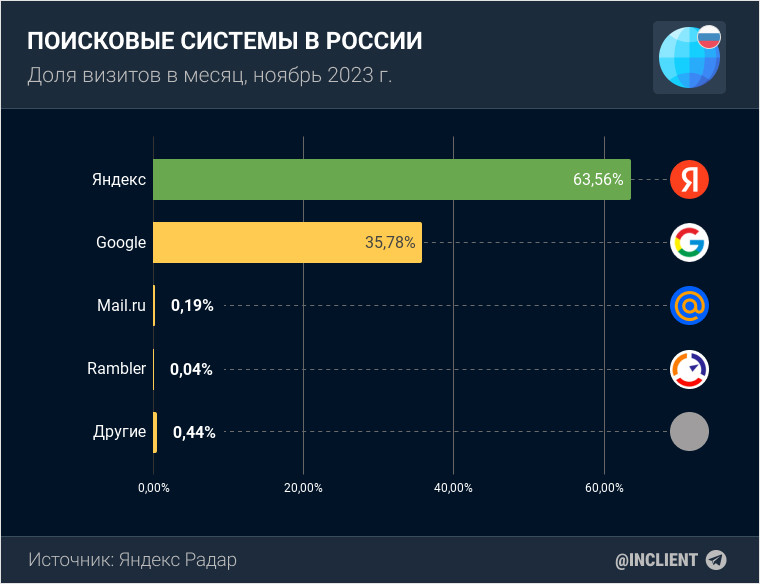 - Яндекс является самым популярным поисковиком России, на втором месте Google