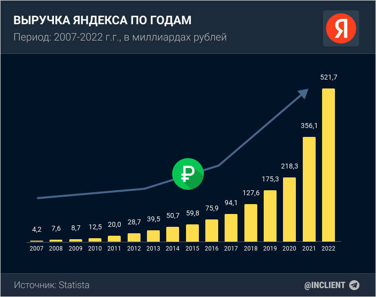 - Выручка Яндекса выросла в 4 раза за последние пять лет