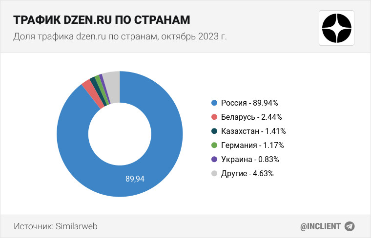 - Российская аудитория ВКонтакте превышает аудиторию Дзена на 10%.