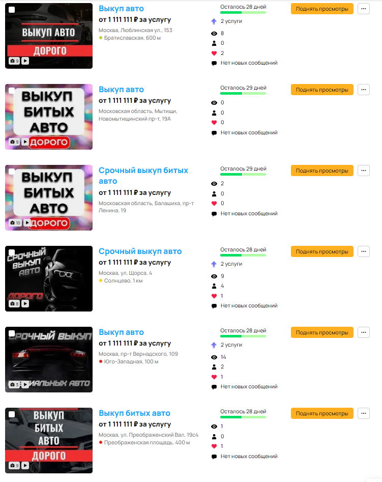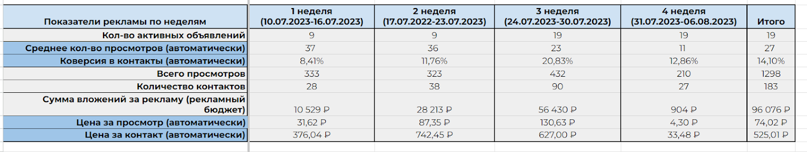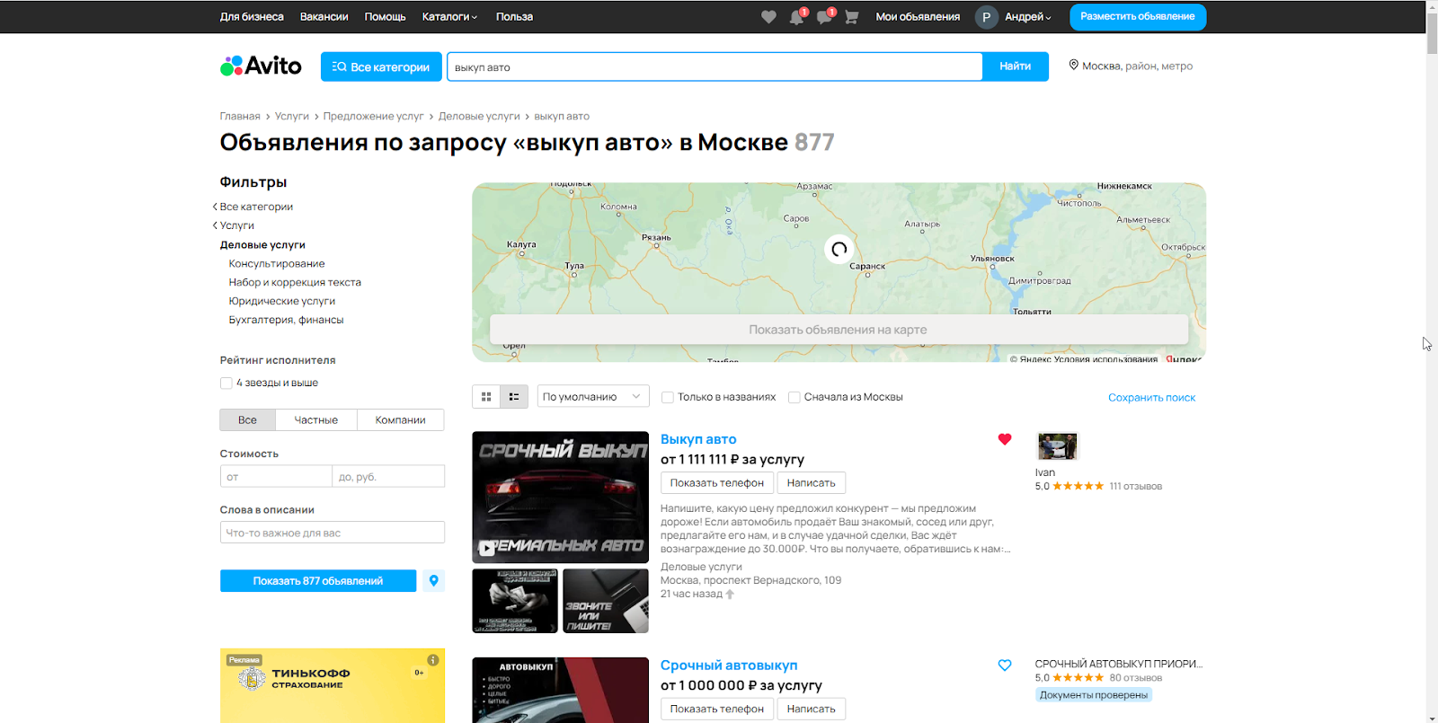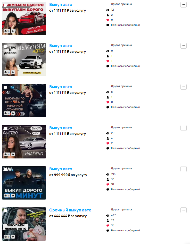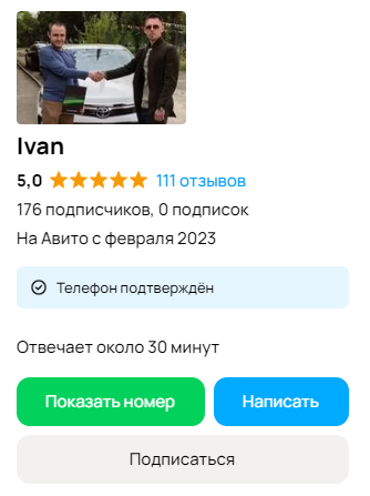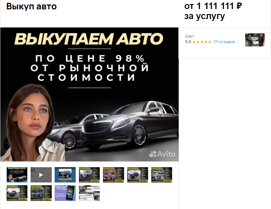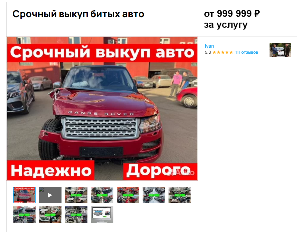 Информацию для текста мы получили от клиента и на основе анализа конкурентов. Мы подготовили описание с ключевыми преимуществами и нашей «продающей» структурой.Также, очень важно было в тексте подчеркнуть целевую аудиторию клиента и отфильтровать потенциально нецелевые заявки. Для этого мы внедрили отдельный блок в описании, в котором постарались максимально точно ограничить сферу наших интересов. По фотографиям мы тестировали разные связки и по итогам определили следующий набор фото, который позволяет получать самый высокий CTR: Проект стартовал с 10 июля, на протяжении нескольких месяцев мы: Итоги первого месяца показали, что клиент может получать с Авито до 4 целевых машин для выкупа, которые принесли нашему клиенту около 1 000 000 рублей прибыли. Это нормальная конверсия, с которой мы можем продолжать работать и стараться улучшать ее. При ведении проекта мы несколько раз вносили корректировки для улучшения результата: Пример работы чат бота: Скорость ответа до подключения чат бота: Скорость ответа после внедрения чат бота: Итоги первого месяца показали, что клиент получает с Авито целевые заявки по адекватной цене, но есть желание увеличить их количество. По итогам 1 месяца мы получили 1298 просмотров и 183 контакта. По итогам первого месяца мы сделали выводы и придумали новые действия, которые позволят увеличить количество заявок — увеличили количество объявлений, усилили платное продвижение и добавили в объявления новые кликабельные баннеры. Статистика показывает, что мы получили на 50% больше заявок в сравнении с прошлым месяцем: 2915 просмотров и 332 контакта На данный момент, для поддержания и улучшения результата мы постоянно вносим корректировки в рекламную кампанию и подключаем новые инструменты. До После Это инструмент, который позволяет регулярно индексировать наши объявления, чтобы находиться в выдаче. Основной механизм заключается в том, чтобы на аккаунте оставались объявления, которые дают результат, а те объявления — которые не собирают просмотры или имеют низкий конверсию скрывались. По итогам работы на начало 3 месяца мы постоянно находимся в топе выдачи по основному ключевому запросу «выкуп авто», а остальные наши объявления видят посетители 2-3 страниц выдачи на Авито. Работу с проектом мы начали в июле 2023 года и на данный момент работа продолжается. По итогам 2,5 месяцев работы получили 4 822 просмотра и 625 контактов при бюджете в 339 116 рублей. Клиент выкупил более 10 машин с общей прибылью около 2-х миллионов рублей! В завершение хочется сказать спасибо всем, кто дочитал кейс до конца. Помните, что Авито — отличный источник получения горячих заявок! Будем рады ответить на ваши вопросы — пишите!