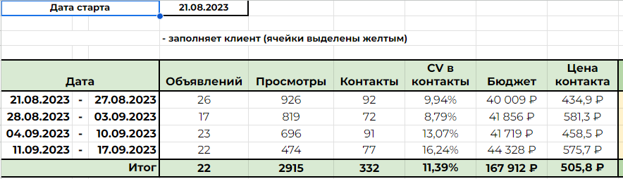 До запуска рекламы клиент работал с другими «авитологами» и не был доволен результатом — аккаунт получал низкое количество контактов, более того, они были нецелевыми. Клиент хотел расти и получать больше качественных заявок с Авито, поэтому запросил у нас аудит аккаунта.
