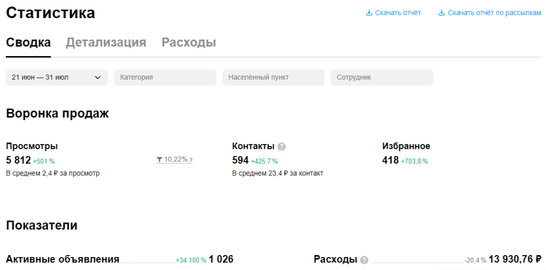 Мы выбрали вариант стратегии, который предполагал следующие результаты за месяц с размещения 700 объявлений: