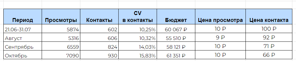 До запуска рекламы у клиента на аккаунте было размещено одно объявление, с которого он получал заявки. Со слов клиента в месяц было ~ 80 контактов. В договоре на первый месяц поставили цель до 150 контактов с бюджетом на продвижение 20.000 и в дальнейшем с возможностью на расширение.