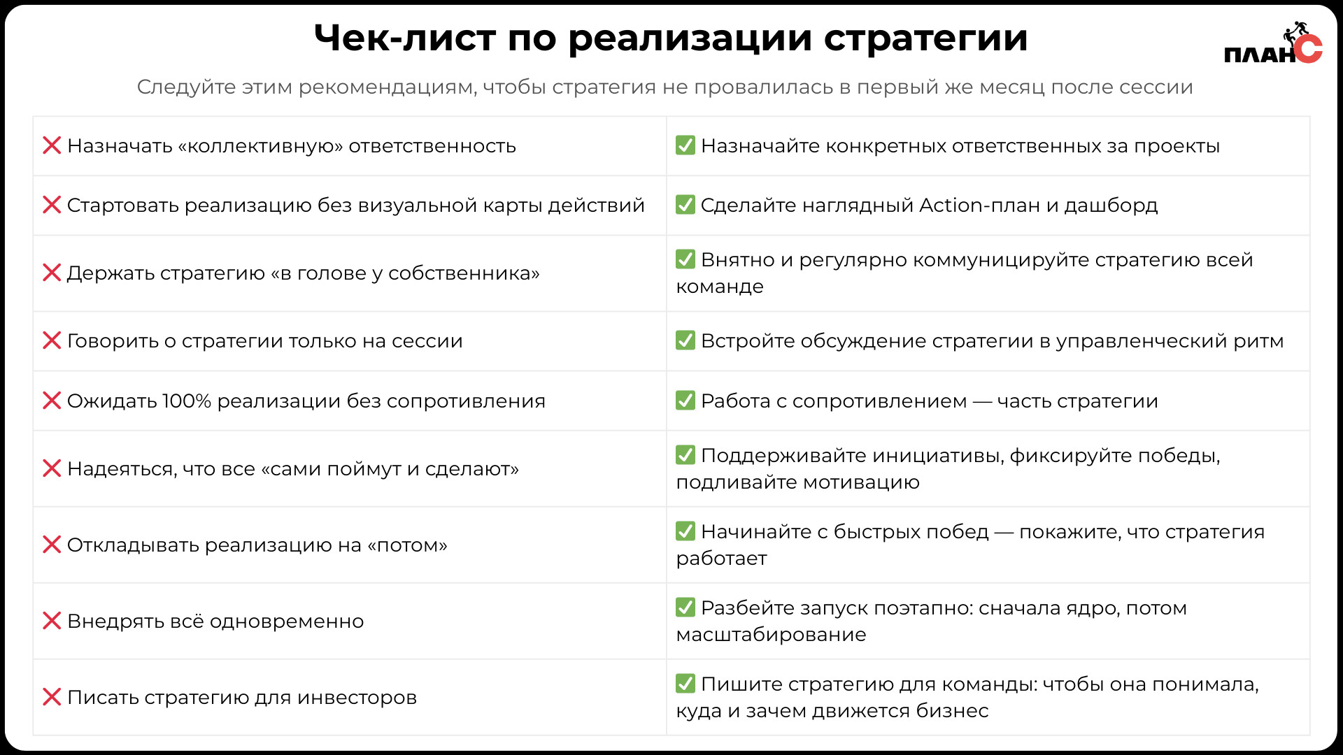 Чек-лист по реализации стратегии