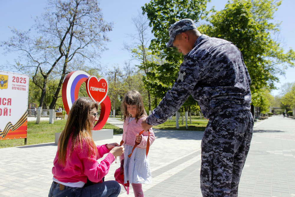 В преддверии Дня Победы сотрудники Управления Росгвардии по Херсонской области приняли участие в патриотической акции, которая прошла в парке культуры и отдыха им. Т.Г. Шевченко в Геническе.