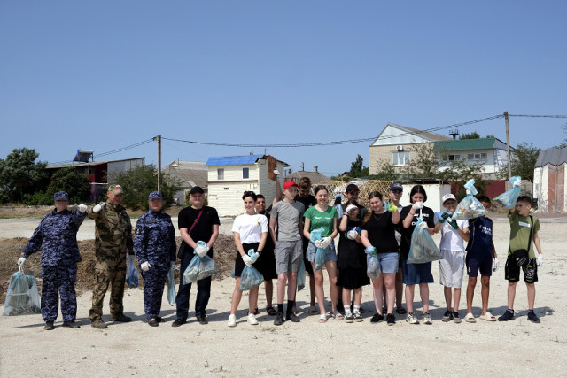 В День эколога сотрудники Росгвардии совместно с учащимися местных школ провели масштабный субботник по уборке центрального пляжа города Геническа.