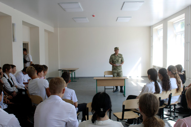 Старшеклассники активно включились в дискуссию, задавали вопросы о деятельности ведомства и возможности поступления на службу. В завершение они поблагодарили военнослужащих за мужество и отвагу, а также за бережное отношение к правде о событиях, происходящих в Херсонской области в ходе специальной военной операции.