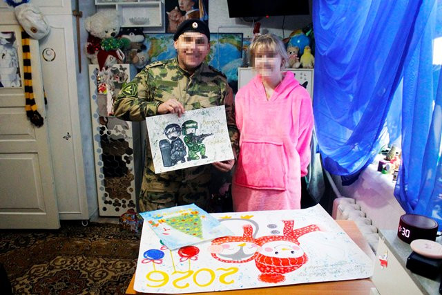 Владлена в свою очередь поблагодарила стражей порядка за внимание и подарила бойцам праздничные и патриотические рисунки.