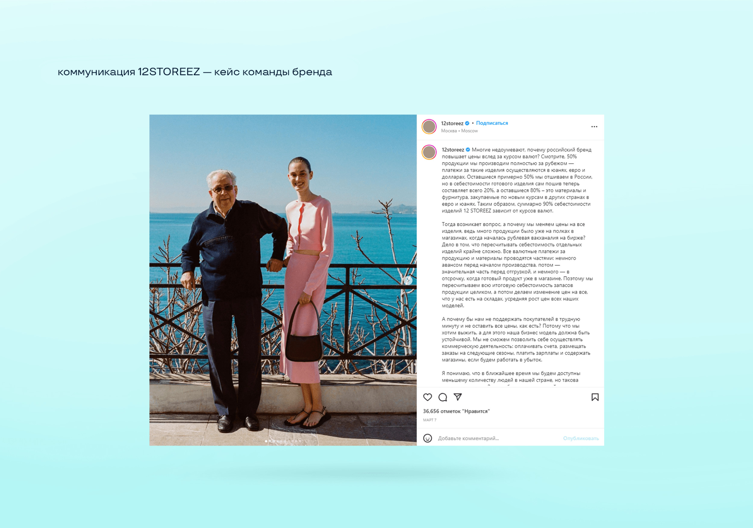 Так McDonald’s, уходя с российского рынка, потерял −17% лояльности у россиян, а IKEA просела всего на −1%. И причина проста: McDonald’s закрывается без всем известных причин, в то время как IKEA официально обосновала свой уход сбоем поставок. В итоге коммуникация показала, кому важнее мнение аудитории, на что, конечно же, хочется ответить взаимностью. Всем понятно, что сейчас бизнес, должен адаптироваться к новым условиям. Но нужно менять не только цены и условия продажи, но и точки контакта: отказываться от работавших ранее инструментов, менять структуру потребления контента и форму общения с аудиторией. Разберем на примерах 4 значимые цели коммуникации в текущей ситуации: 1. Прогнозирование поведения аудитории и тестирование решений. Кейс «Очаково». Состояние неопределенности накрыло и компании, и их аудитории. Любимые бренды больше недоступны, каналы потребления контента изменились. Заново формируется и потребительское поведение. Его русло еще не определено, поэтому сложно предугадать реакцию аудитории на новые точки коммуникации. Компания «Очаково» разработала аналог ушедшим с рынка культовым Coca-Cola, Fanta и Sprite. «Очаково» не только использовали визуальное сходство через фирменные цвета и созвучные названия, но и сохранили узнаваемые вкусы. Кажется, что это хайп, но рассмотрим детальнее. В данной ситуации бренд мимикрирует под известные марки, и можно сказать, пользуется плодами маркетинга, нарабатываемого ими годами. Это устойчивая база покупателей, и гипотеза команды «Очаково» звучит как-то так: люди не так быстро меняют свое поведение при долгосрочном потреблении любимого бренда, поэтому первое, что они попробуют при его исчезновении — это максимально похожий продукт. Что ж, тут остается только разработать не просто похожий, а привычный вкус, и прием сработает. Если хочется принимать подобные решения, то тут перед выпуском вашего продукта помогут исследования рынка в меняющихся условиях. 2. Адаптация прошлой коммуникации и креативов под новые условия. Кейс Nokian Tyres. Мы слышим привычный слоган по-иному в контексте внешних событий, а любую рекламную кампанию воспринимаем через призму общественной повестки. Нужны новые идеи по адаптации коммуникации к текущим реалиям. Готовность бренда пересмотреть стиль общения может позитивно повлиять на отношение потребителей. Компания Nokian Tyres выбрала тактичность и заботу о чувствах своих клиентов. Производитель шин отказался от слогана с использованием слова «безопасность» для федеральной рекламной компании, посчитав, что сейчас оно может иметь неоднозначный подтекст. Жирный плюс бренду за мышление в интересах общественности, а не просто соответствие повестке. С этим кейсом уже работали мы сами, поэтому детали из первых уст. Клиент понимал, что сохранять свою позицию будет неадекватным решением. Тактику которую мы выбрали — это сместить акцент с одного преимущества, на ощущение от пользования продуктом в целом. Вы тоже можете это применять: у каждой компании есть набор ценностей, и всегда можно их объединить или наоборот раскрыть ту, которая сейчас сильнее откликнется аудитории. В любой ситуации можно посмотреть на задачу под новым углом. 3. Транслирование позиции бренда на реакцию аудитории. Кейс 12STOREEZ. Аргументация брендом причин и следствий своих действий делает его политику прозрачн