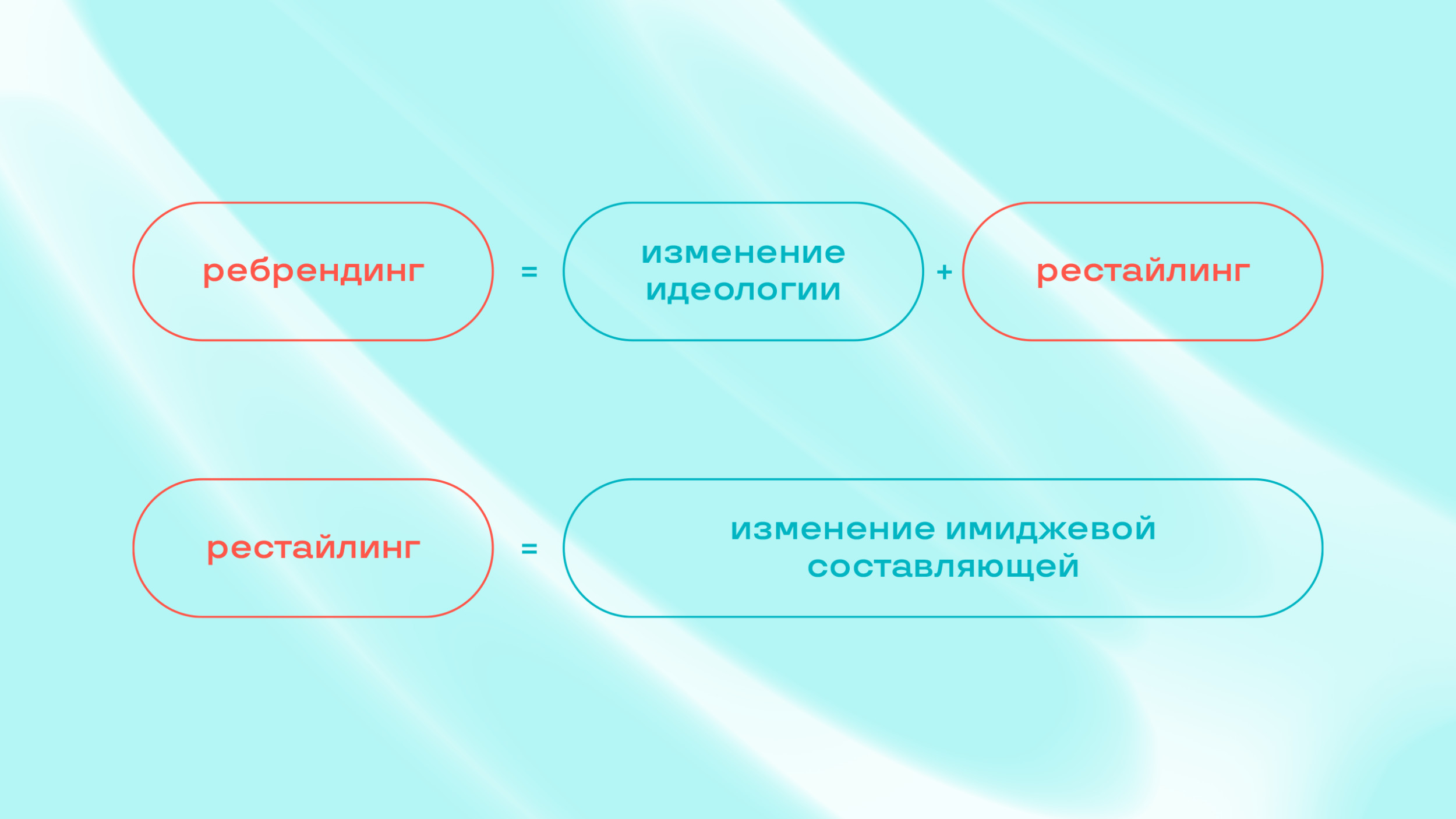 - Ребрендинг — это смена идеологической и имиджевой части бренда.